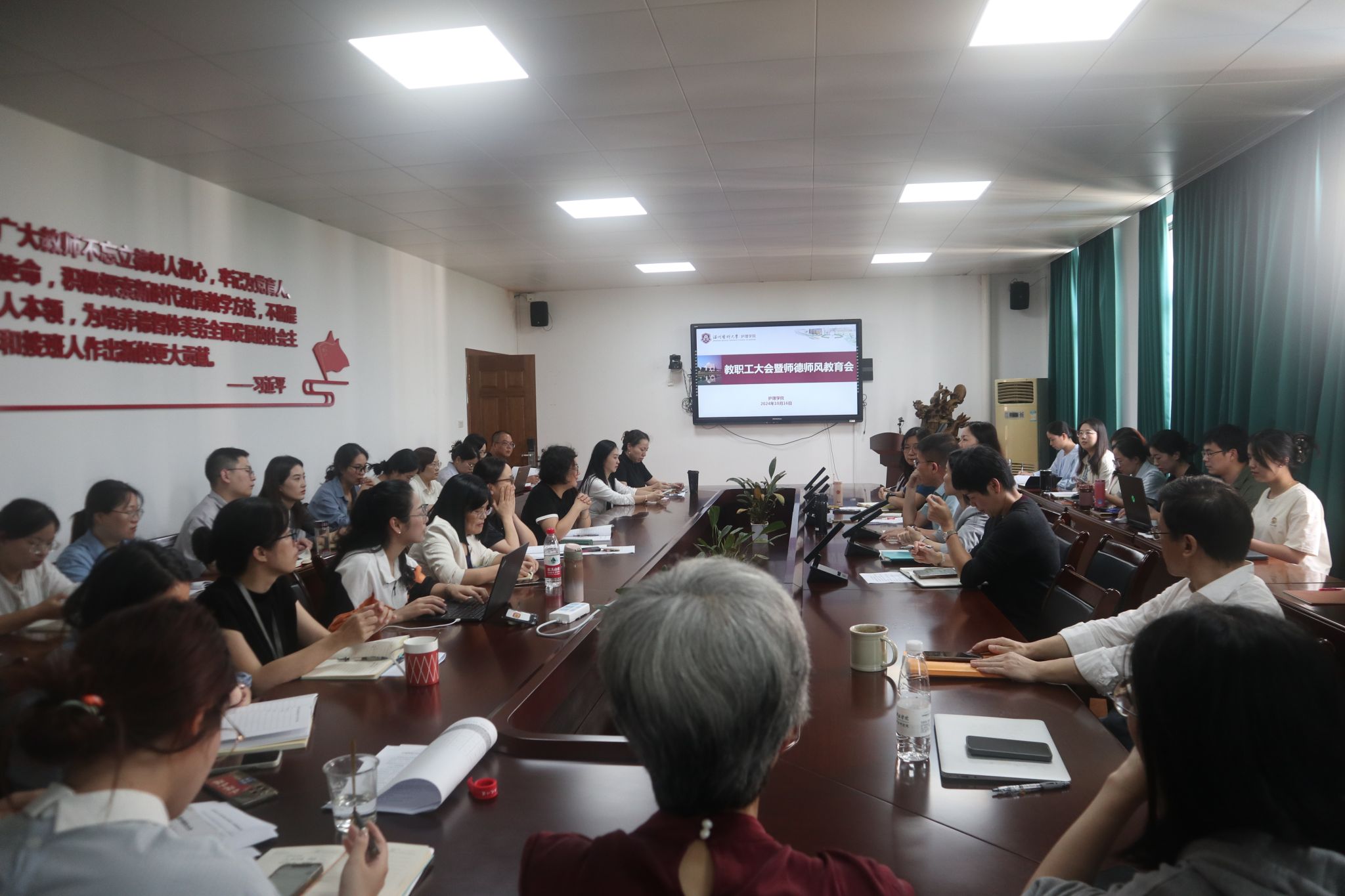 10月16日下午,学院在7C306会议室召开全院教职工大会暨师德师风教育会。会议由党委书记王敏主持。