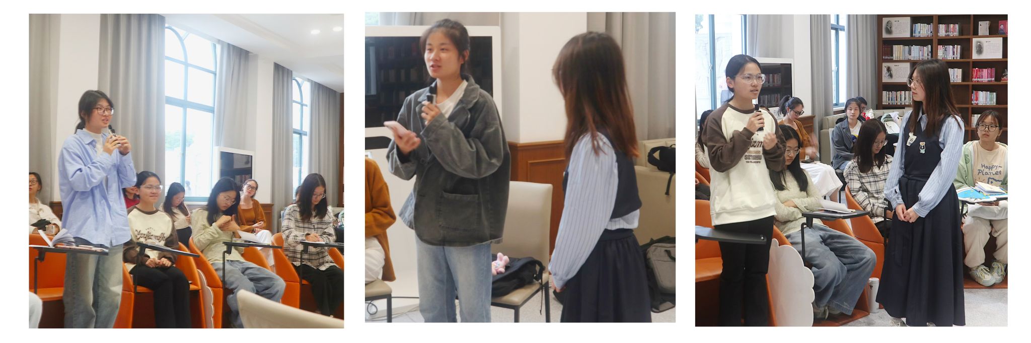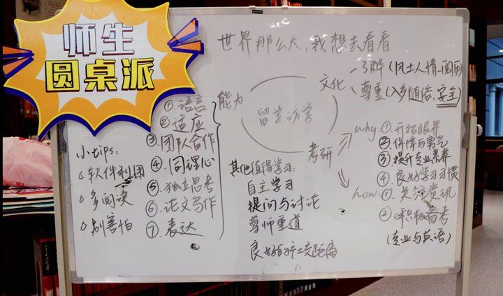 现场讨论氛围浓厚,讨论话题层出不穷,在座师生围绕游学、访学、留学等话题进行交流探讨,各抒己见,纷纷表示受益匪浅。此次活动通过线上直播与现场讨论相结合的方式,扩大活动辐射圈,打造师生交流新平台。