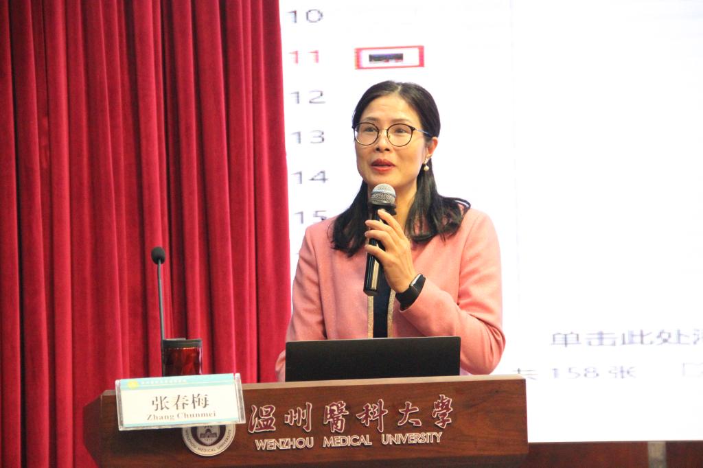 张春梅副院长用富有感染力的语言给同学们讲述了她在4月22日-5月22日期间,作为领队之一,带领着130名医护人员援沪核酸采集的故事。她从援沪核酸采集队的挑战、援沪核酸采集队的应对、援沪核酸采集队工作收获三方面给同学们作分享。