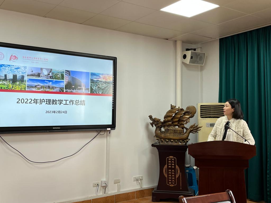 会上,附属一院护理部副主任张丽青从教学工作量、教学创新、教学成绩三部分回顾了过去一年的教学工作,提出今年将重点推进教学骨干教学能力提升、教学资源建设和课程建设。附属二院护理部副主任李育梅汇报了上一年度在护理教学方面取得的成果,提出今年将加速护理教学师资队伍建设,提升临床教学质量。