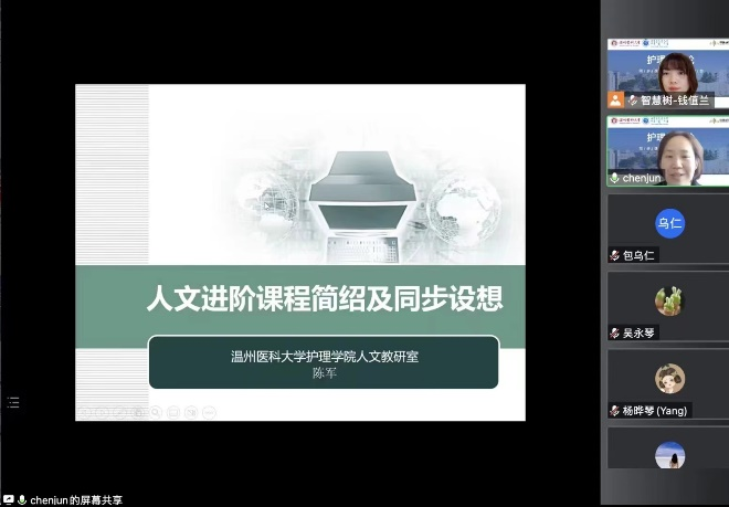 为积极响应教育部高教司虚拟教研室建设和“慕课西行”号召,深入推进信息化教学手段和教学方法改革创新,成人导航 与内蒙古民族大学就《护理人文课进阶课》及《护理学导论》课程开展了同步课堂。开课前夕,两校课程负责及主讲教师开展了线上备课,相互介绍了各自课程,并确定同步课堂的内容及实施方案。
