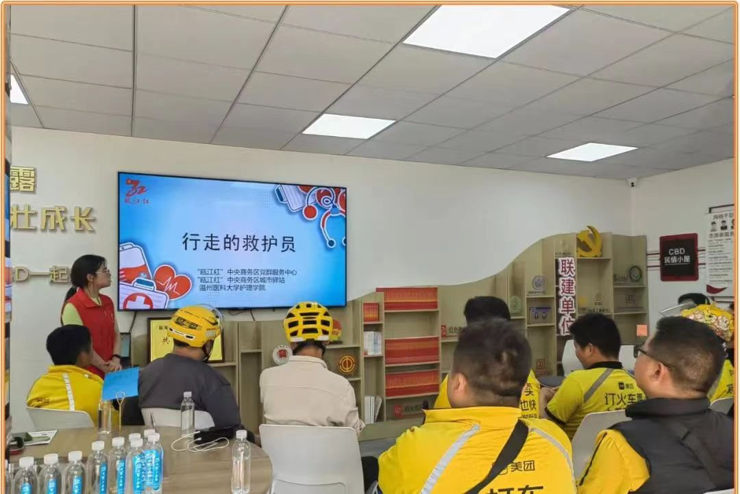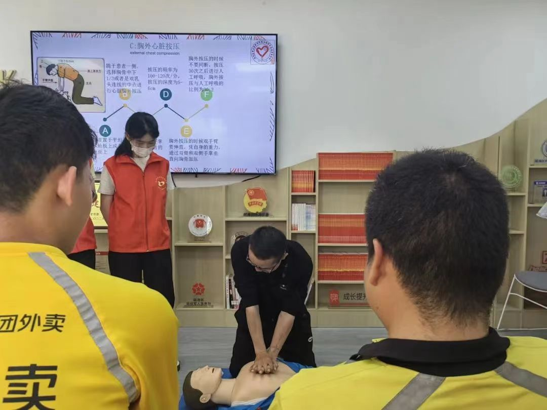 4月15日,成人导航 红十字搏时急救宣传志愿服务队在“瓯江红”商务区城市驿站开展了“急救骑士”培训活动,活动主要针对外卖员匆忙进食易导致呼吸道梗阻的现象和外卖员接触人群大的特点,围绕心脏骤停、心肺复苏术和海姆立克法三方面展开。其目的在于提高骑士们的急救意识,为“行走的救护员”的出现创造条件。