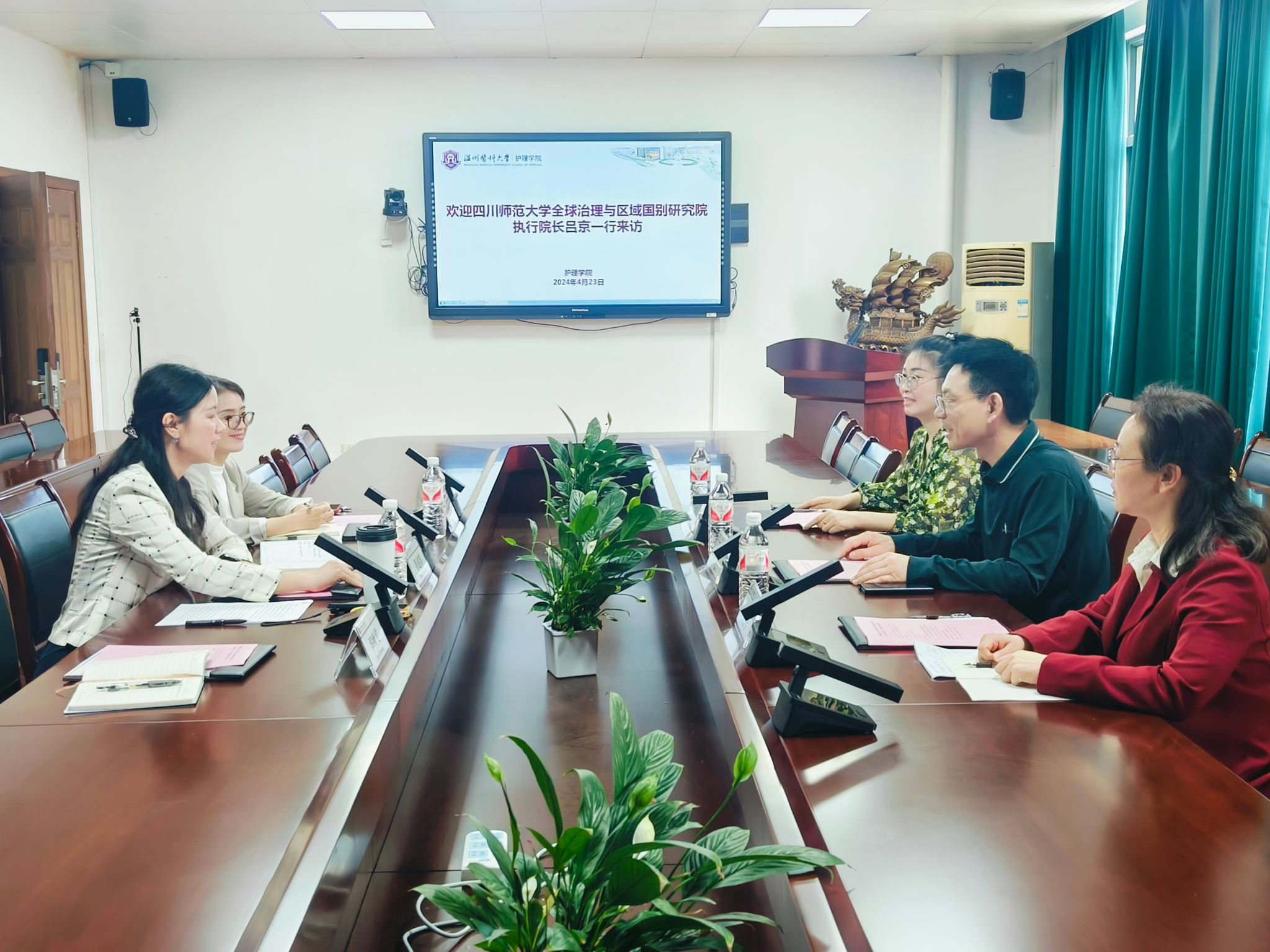 4月23日上午,四川师范大学全球治理与区域国别研究院执行院长一行来成人导航 访问交流。学院董超群副院长、朱晓玲老师及教学办相关老师参加会议。
