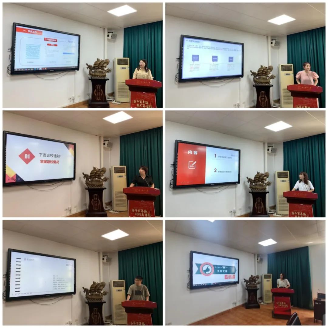 会上,各辅导员分别就暑期工作总结与开学初工作计划进行了汇报。陈素云副书记介绍了开学初各项工作安排,强调指出,各辅导员要明确分工做好工作规划,并共同助力做好学院迎新工作。重点谋划和布局学院团学和党建工作,抓好就业和考研两条线,动态关注特殊学生,确保学生安全稳定。