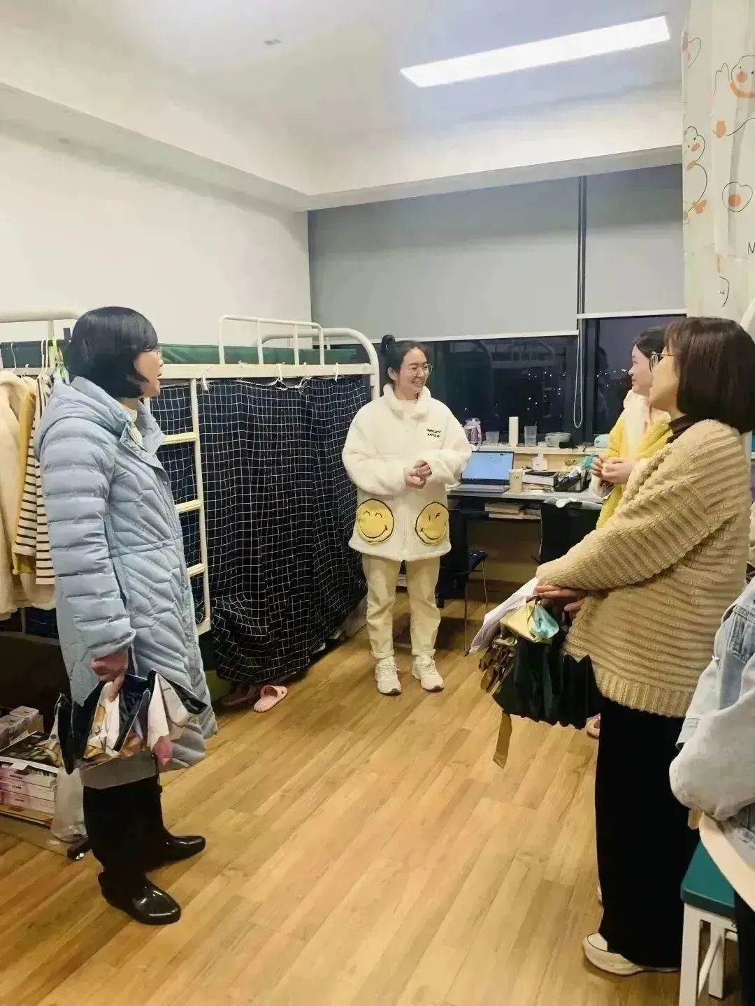 为更好地了解学生在实习期间的思想、学习、生活和工作情况,学院党委副书记陈素云老师带领毕业班的辅导员们看望慰问实习生们,为坚守在岗位的实习学生送去问候和关心,同学们主动讲述自己近期的思考与感悟,也提出了自己在升学、实习、生活等各方面等遇到的困惑与问题。陈素云老师对同学们的困惑逐一耐心疏导,并为同学们送去慰问物资。