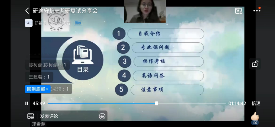 考研复试临近,为帮助成人导航 考研学子更充分地迎接考研复试,提高考研复试指导的针对性和实效性,3月23日晚上,成人导航 就业指导服务中心举办“研途守护”线上考研复试分享会,邀请了张迪老师和江小琼老师为同学们进行考研复试专场经验分享。