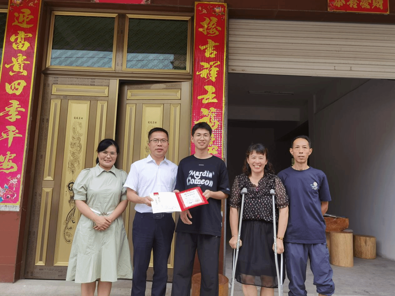 7月29日上午,成人导航 院长蔡福满前往丽水市莲都区,化身“邮差”亲自将2023年第一份录取通知书送到学生舒斌凯手中,学院社区教研室主任李菊芳陪同。