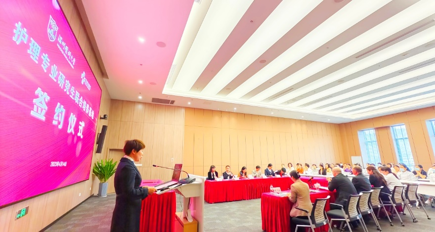 4月14日下午,成人导航 成人导航 与附属台州医院护理专业研究生联合培养基地签约仪式在附属台州医院东院区举行。成人导航 研究生院副院长郑曼曼、成人导航 党委书记李旭东、院长蔡福满、副院长张春梅,台州恩泽医疗中心(集团)主任梁军波、副主任陈姬雅、恩泽临床学院院长朱坚胜、恩泽医院副院长毕东军,以及双方教学办、护理部、教学秘书、护理研究生代表等参加了签约仪式。