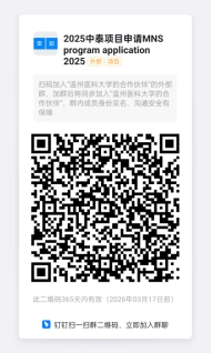 (3)注意事项:申请人应准确填写个人信息并提供真实材料,因信息填写错误、填报虚假信息而造成不能录取的,后果由申请人本人承担。申请人请于2025年5月10日前完成申请材料的上交。发送报名材料后请钉钉扫码加入2025年中泰项目申请群。