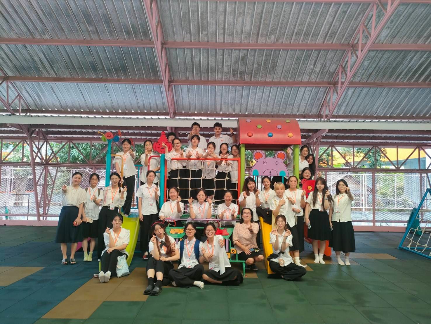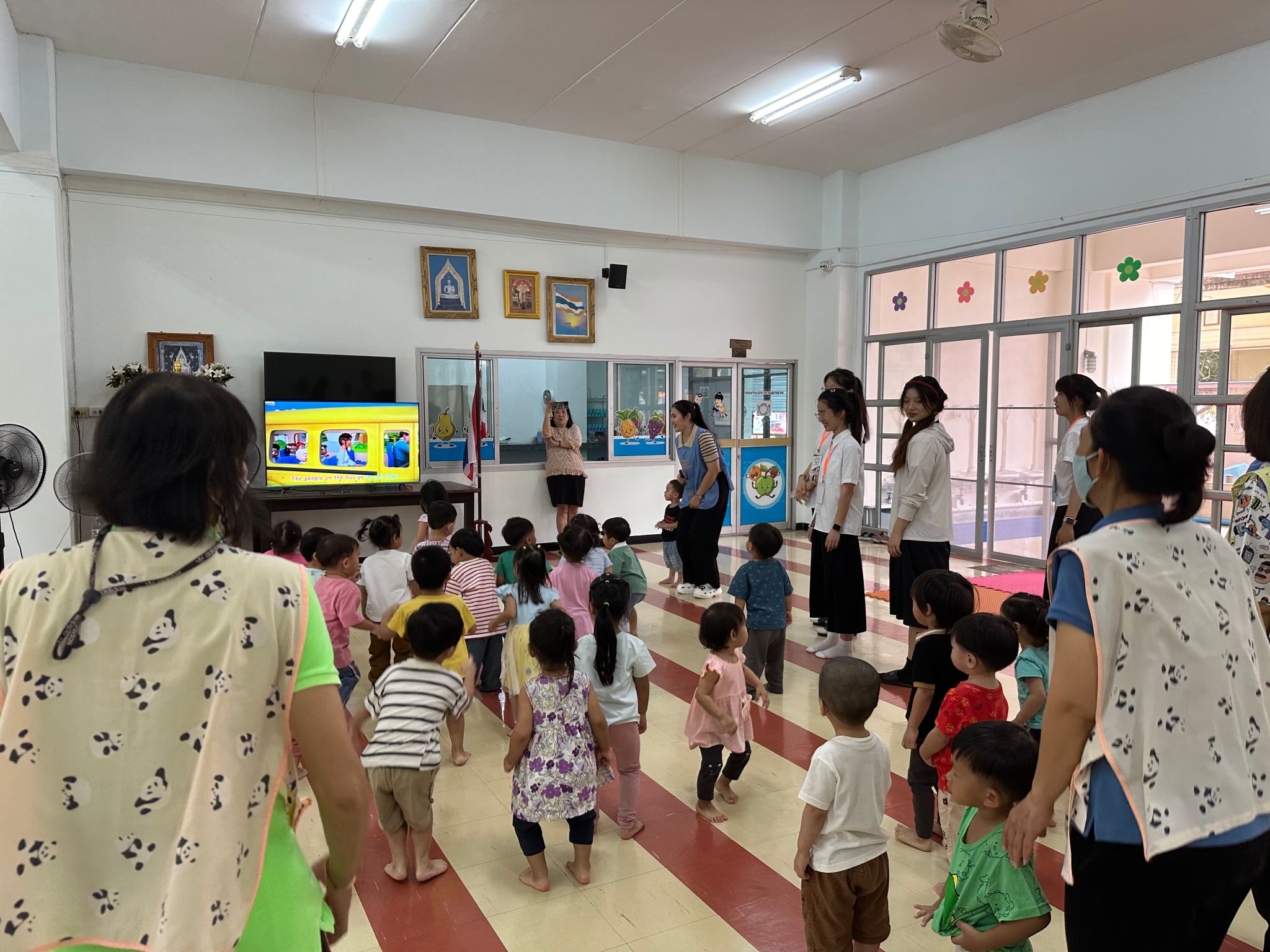 访学团在泰方老师的带领下来到了成人导航 儿童研究和发展中心。幼教老师介绍道,该中心是为成人导航 的学生学习实践幼儿护理的基地。