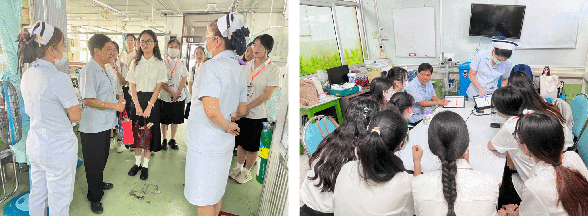 访学团参观了医院的外科和内科病房,学习到了很多和国内不同的护理专业知识。结束后,成员们派代表分享了参观收获以及所观察到的中泰护理模式差异,这也使成员们对不同国家的护理文化和实践有了更深入的认识。
