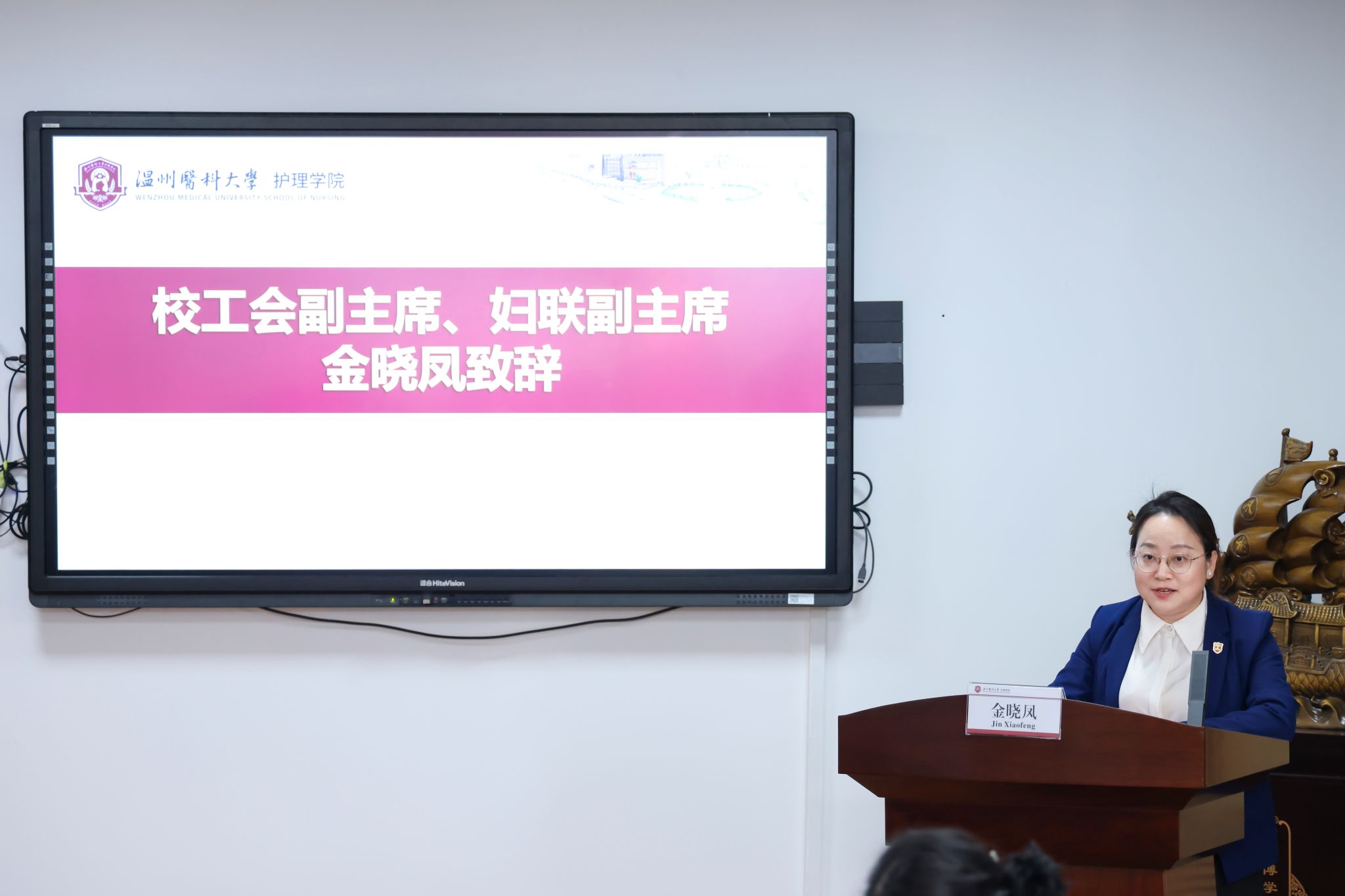 金晓凤代表校妇联向大会召开表示祝贺。她指出,长期以来,成人导航 妇联在推进学院发展和学校建设上都贡献了智慧和力量。她希望学院妇联,以习近平新时代中国特色社会主义思想为指引,提高认识,深刻认识妇女工作的重要性;发挥优势,彰显特色,深入挖掘妇女智慧;创新举措,加强妇联建设,共同谱写巾帼新篇章!