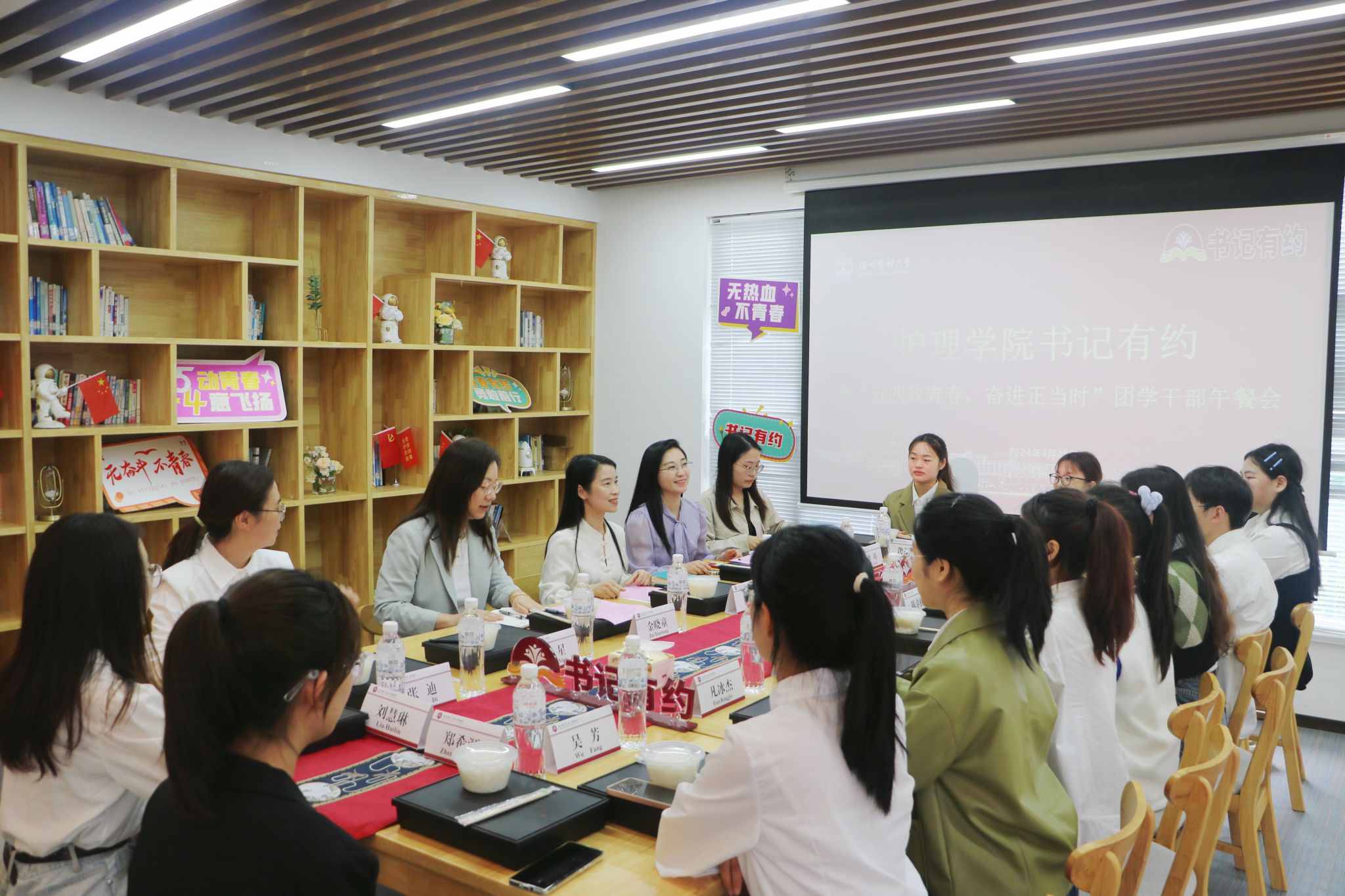 为了弘扬五四精神,凝聚青年力量,提升学生干部队伍建设,4月25日中午,成人导航 在我家书房举行书记有约暨“五四致青春 奋进正当时”师生干部午餐会。学院党委书记王敏、党委副书记金晓童、学工办主任张婧婧、团委书记叶星、辅导员张迪与学院主要学生干部共谈青春,共讲奋斗,共话理想!
