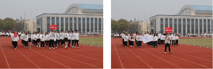 活动伊始,王敏书记为运动会致开幕辞,正式拉开比赛序幕。同学们依次进行“龙”行虎步、稳中“球”胜、“绳”采飞扬、坚忍不“拔”四个项目的比拼。比赛过程中,欢呼声与呐喊声伴随着春风吹进操场,比赛现场激烈热情。同学们相互配合,无论是默契的动作还是铿锵有力的号令,各班级都齐心协力,拼搏到最后,充分发挥了团体的凝聚力。