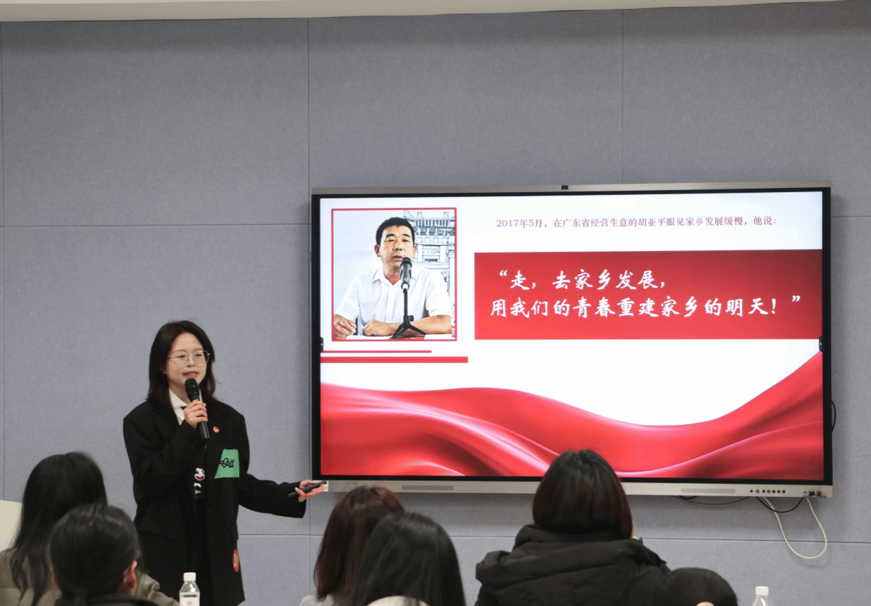 胡韵同学通过讲述家乡深入践行“八八战略”,凭借着毗邻象山影视城的区位优势,制定符合自身发展定位的“农旅+影视+民宿”“三位一体”的村庄发展模式,强力推进创新深化、改革攻坚,积极结合美丽乡村、旅游民宿、影视拍摄,逐渐完成了由“输血”到“造血”的质的飞跃,最终走向了由被动“输血”到主动“造血”的可持续振兴发展之路。