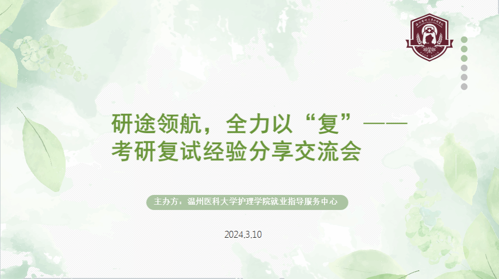 为助力成人导航 学子顺利通过考研复试,2024年3月10日,成人导航 就业指导服务中心举办了研途守护,全力以“复”线上考研复试分享会。本次分享会邀请了现就读于浙江大学的硕士研究生陈蔚婧、中国医科大学的硕士研究生宋晨宁和在本校攻读研究生的王钰琦,为考研学子分享考研复试经验,指点迷津。
