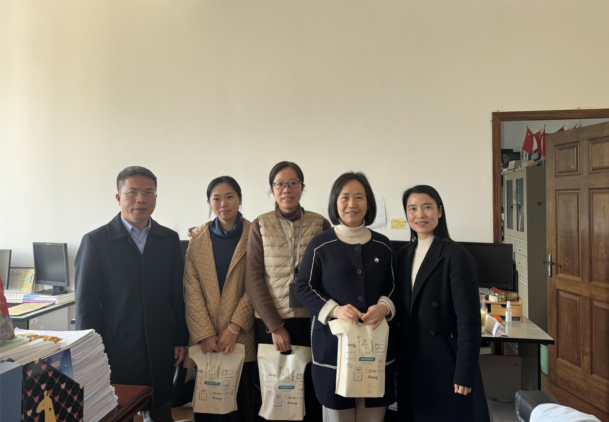 3月8日上午,学院院长蔡福满、党委书记王敏、党委副书记金晓童、学院副院长黄小琼、学院副院长董超群来到各个教研室、办公室,亲自将代表着祝福和感谢的礼物送到每一位女教职工手中。老师们收到礼物的那一刻,幸福和自豪之情油然而生。