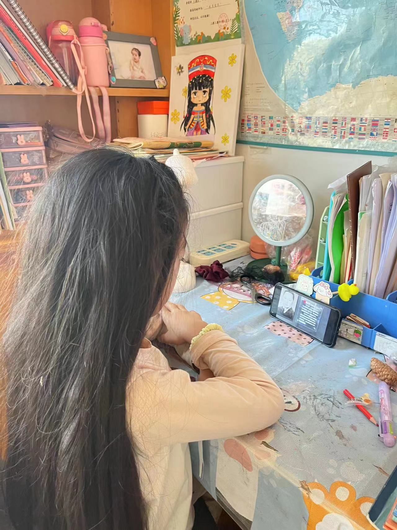 “到西部去、到基层去、到祖国和人民最需要的地方去”是西部计划志愿者们坚定的选择。也许是深受学长学姐的影响,潘芸菲在校期间,常常查阅关注相关资料,久而久之,“前往西部,前往祖国急需之地“这一想法就在她心中落地生根。得知学校举办云支教活动,她怀着“爱能行千里”的信念,毅然选择成为其中一员。