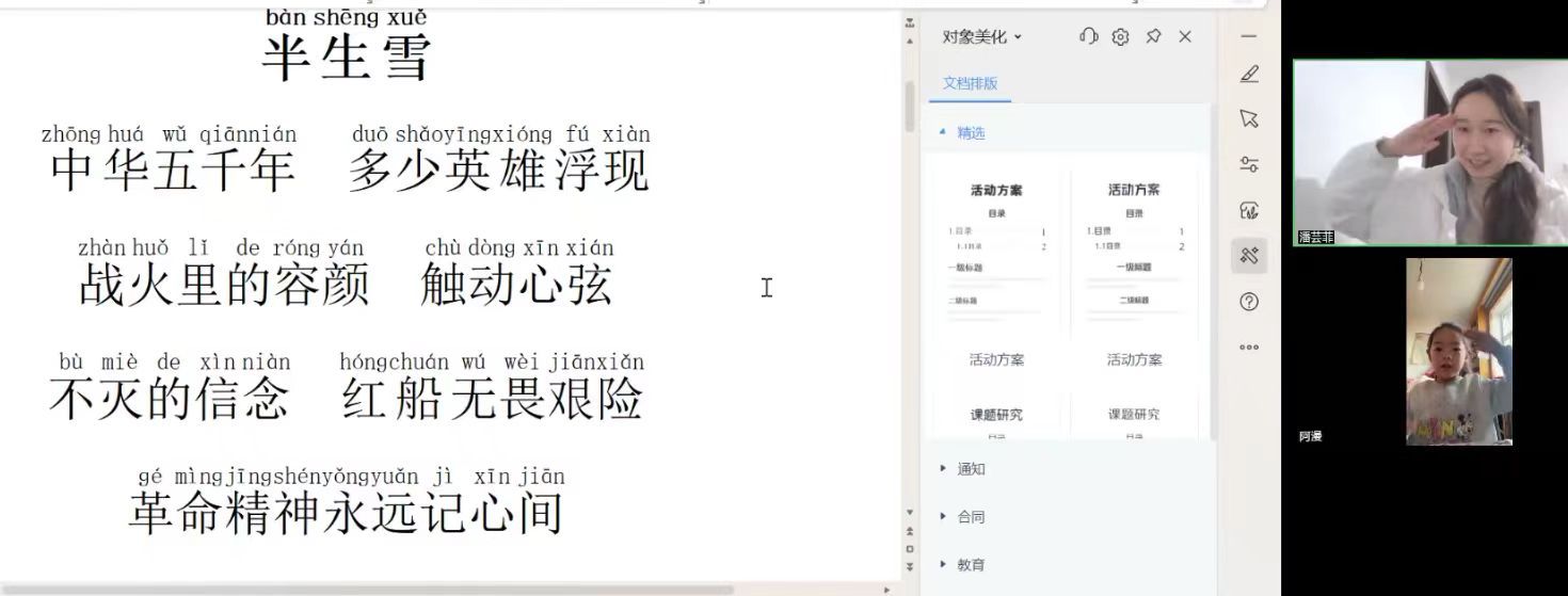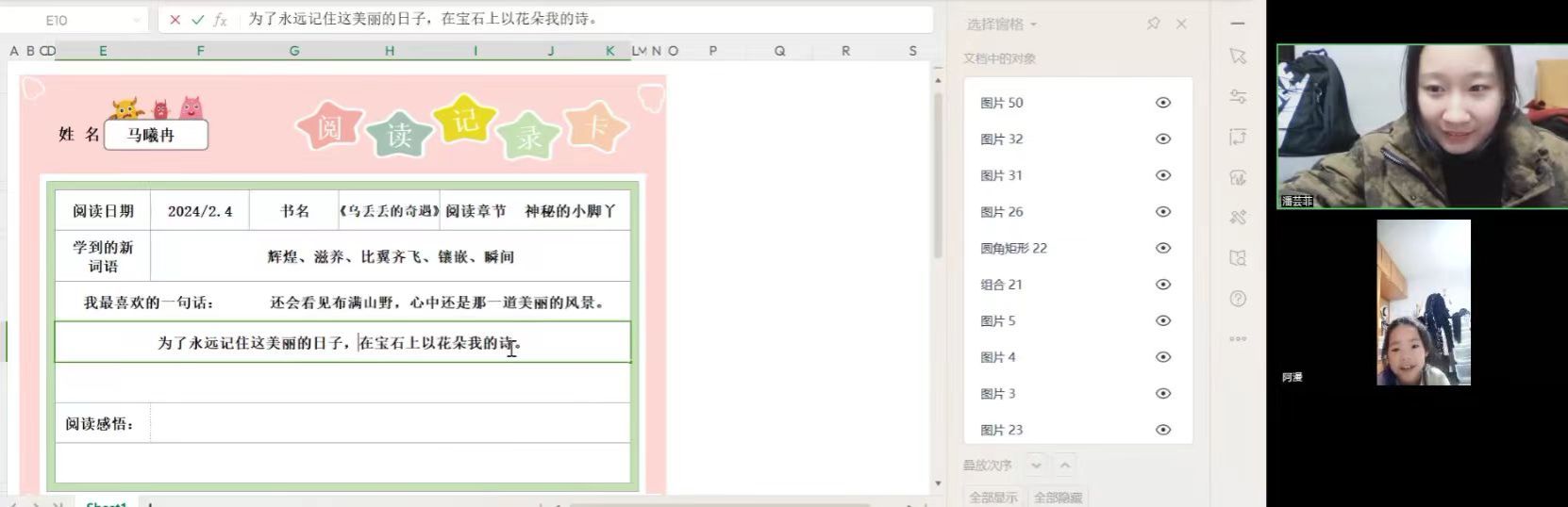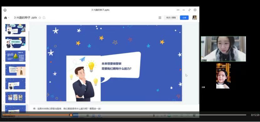 在云支教活动中,潘芸菲与结对的马曦冉小朋友相互陪伴,共同涉猎书海,共享学习之乐。面对生字难题,她们携手共进,相互启迪智慧。潘芸菲善于捕捉曦冉的兴趣所在,以灵动的视频和妙趣的PPT,增添活动的吸引力,唤起曦冉的好奇心。在阅读《乌丢丢的奇遇》时,她索性与小朋友开视频一起阅读,相互监督。有不认识的字,先查字典,她再来解释。曦冉的求知欲让潘芸菲更深切地感受到教育之美与价值,一起云讲堂的活动,则让潘芸菲体验到了教学相长的乐趣。