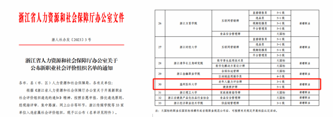 近日,浙江省人力资源和社会保障厅向社会发布一批新职业社会评价组织名单,33家单位入选省属社会评价组织,成人导航 位列其中,新增健康照护师、老年人能力评估师两个新职业技能等级认定资格工种。成人导航 高度重视此次申报工作,根据通知要求,积极认真筹备,融合继续教育学院和5所附属医院的师资、场地、设备等相关资源,并多次召开专题会议讨论、推进申报工作。继2022年我校获首批省属职业等级认定社会评价组织、获批健康管理师新职业技能等级认定资格之后,又成功新增两个职业工种。学院还与浙江广厦建设职业技术大学合作,开展总金额为100万元的“职业本科大学护理学专业申报与高质量建设研究”技术咨询服务。