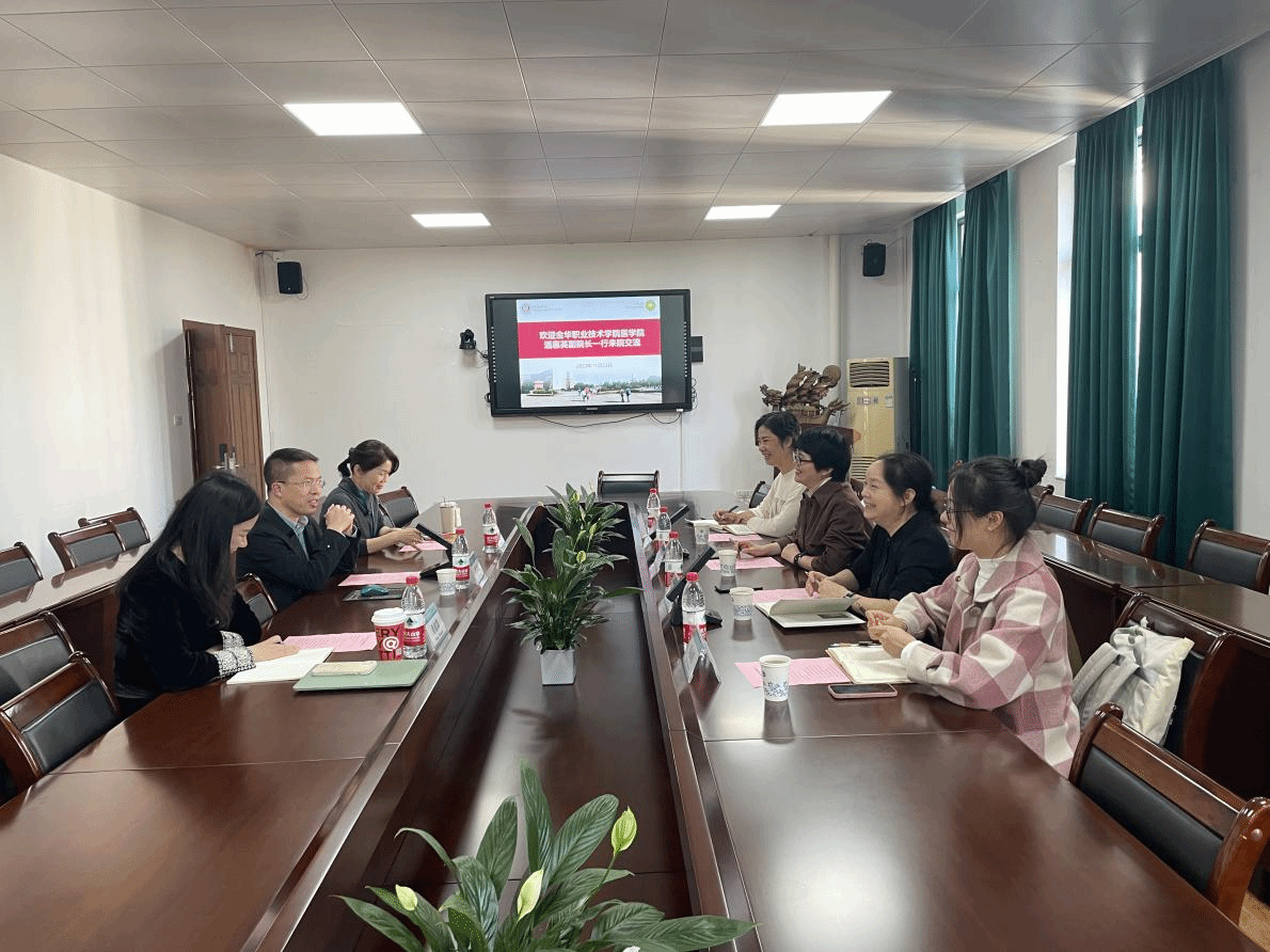 11月22日,金华职业技术学院医学院副院长潘惠英、专业群带头人胡爱招、护理专业主任李春燕、护理专业教师周赤腾一行来院访问交流。成人导航 院长蔡福满、教学办主任孙海琴、研究教研室主任董超群、儿科教研室副主任陈海燕等在7C306热情接待了客人。