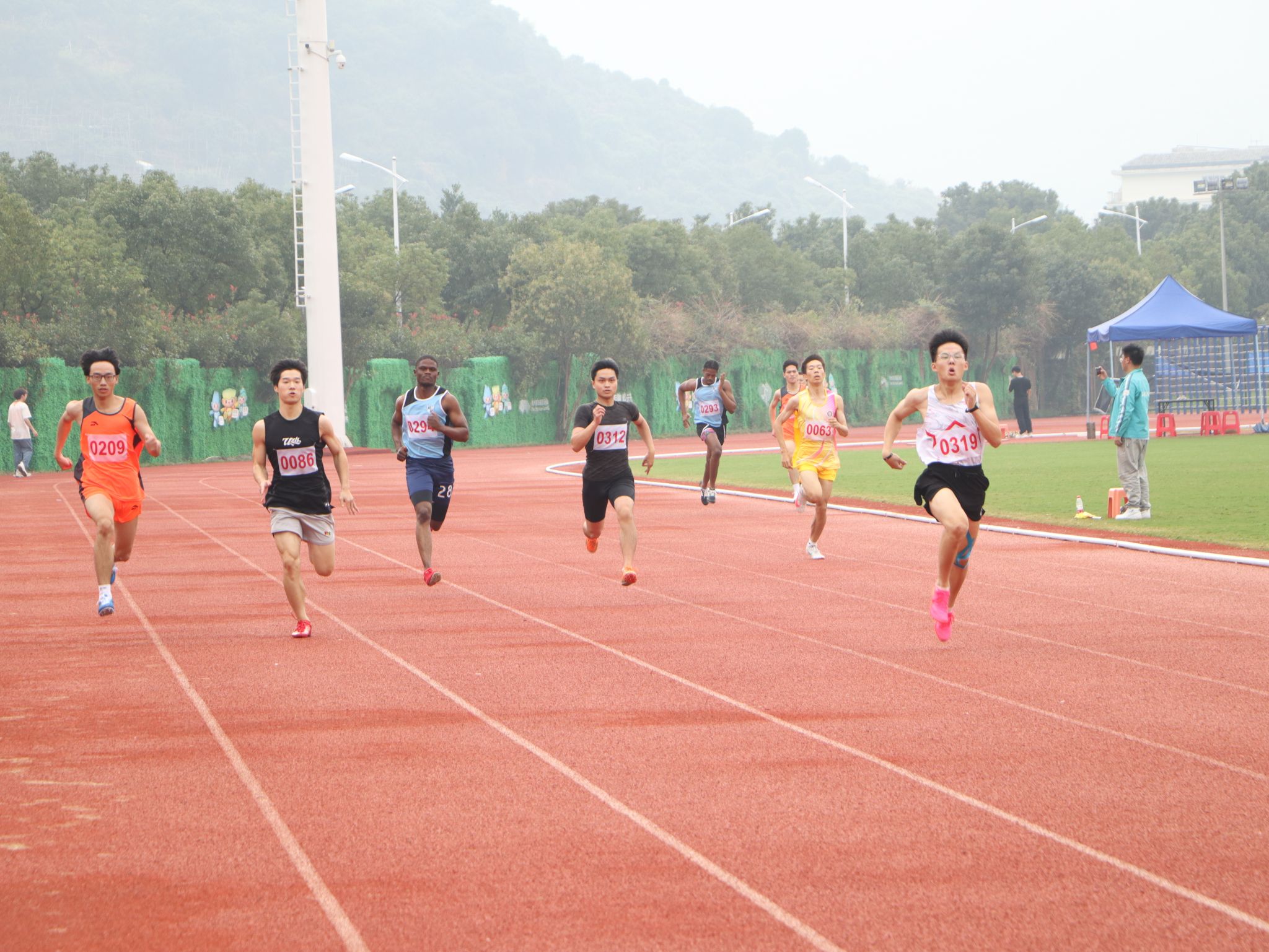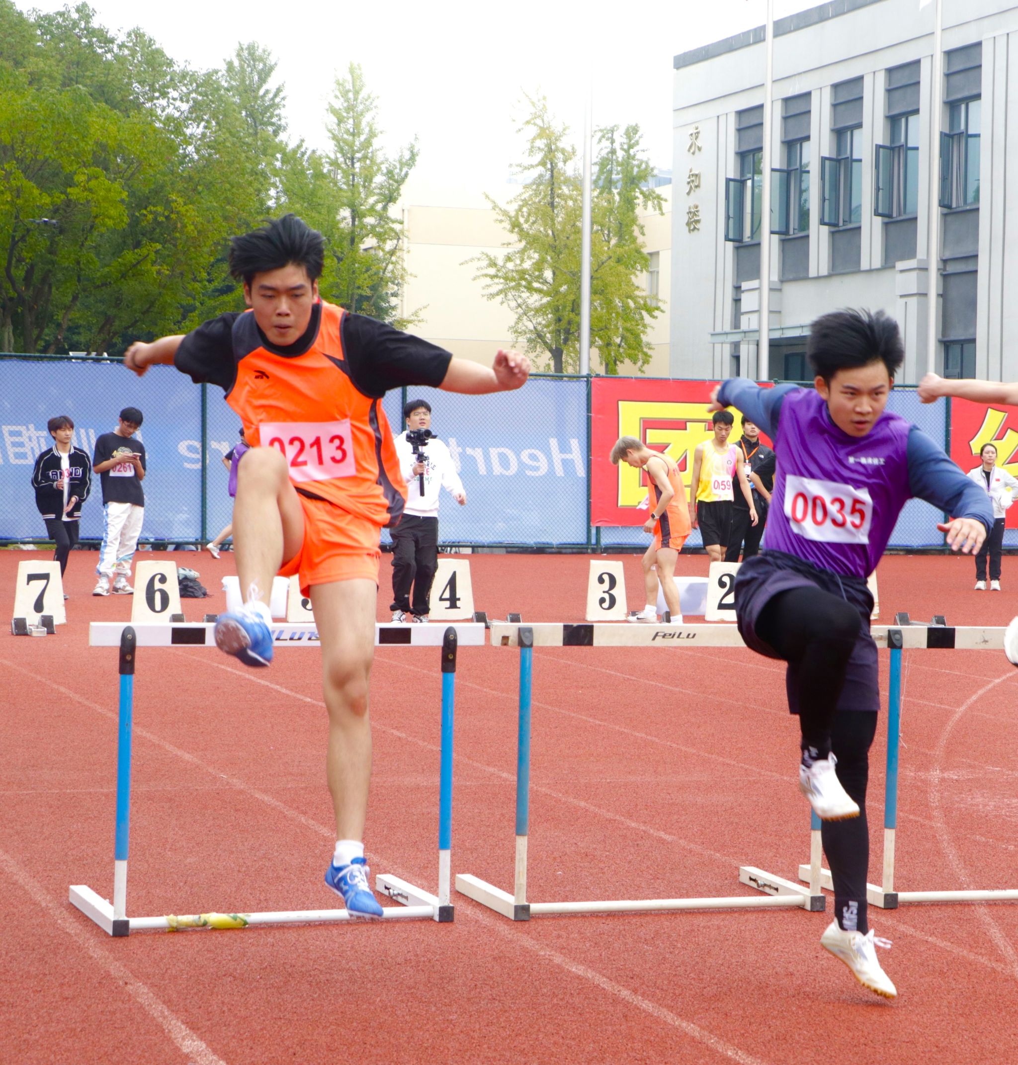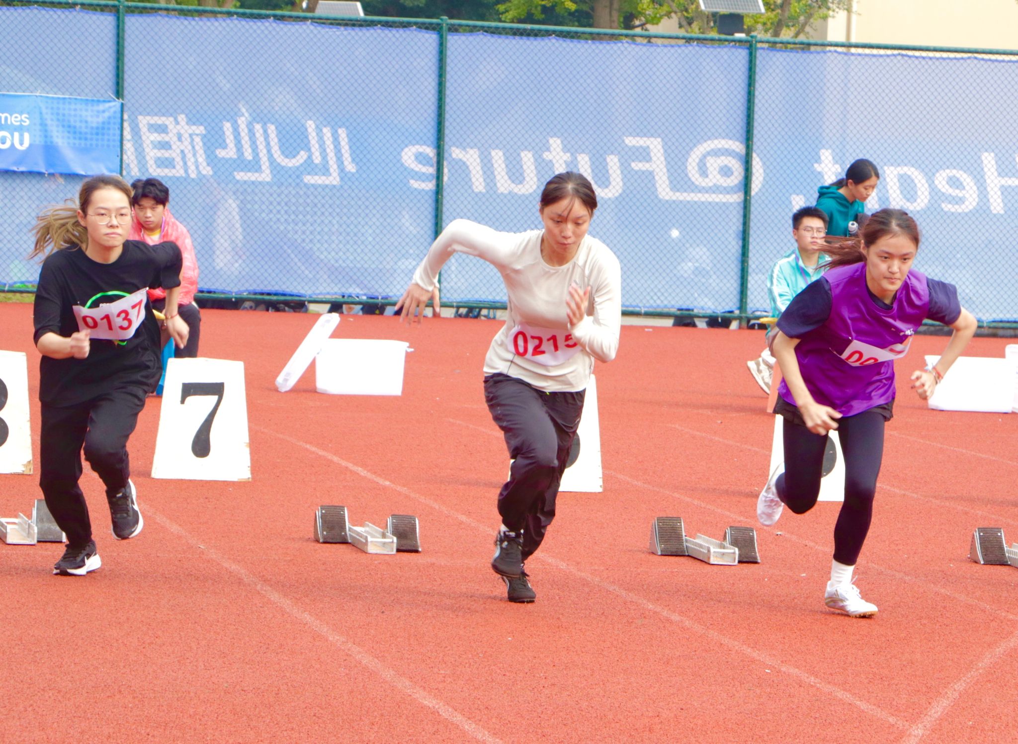 径赛项目,成人导航 学子将汗水挥洒在跑道,让欢笑飞扬在赛场,勇立潮头。成人导航 男子组在比赛中奋勇争先取得良好成绩:王兆乾在男子110米栏中获得第六名;邬易航在男子100米中获得第七名;吕晨垚、康子龙分别在男子400米中获得第五、七名;吕健在男子1500米中获得第八名。成人导航 女子组争分夺秒巾帼不让须眉:蔡晨阳在女子100米栏中获得第二名;宋湘珺、胡玲、蔡晨阳分别在女子100米中获得第一、二、六名;钱锦颖、汤家贝分别在女子400米中获得第三、五名;袁艺锦、陈乐霖分别在女子1500米中获得第二、六名。4×100米接力的赛场上成人导航 运动员齐心协力,勇往无前——何骏杰、黄敏峻、宋佳骏、邬易航获得男子组第四名;宋湘珺、汤家贝、胡玲、钱锦颖获得了女子组第一名。其中成人导航 女子组接力以0:53.90的好成绩打破了原校记录。