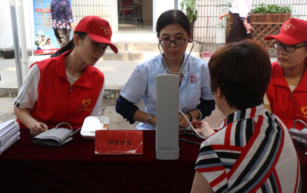 随后,成人导航 教工第二党支部党员教师们为老人们进行量血压、量血糖,对糖尿病、高血压的宣教等义诊服务。与此同时,附二医专家现场义诊也在雨花斋同步进行,内容包含测血压、肌性疼痛、中风后康复咨询指导、骨关节痛、腰背痛、骨质疏松预防、骨密度测试等。附二医护人员还和成人导航 学生志愿者组成五支医疗服务小分队为五户不方便下床下楼活动的孤寡老人提供上门服务。参与此次活动的志愿者感慨道:“能送上一份爱心一份温暖总是让人开心的,看到91岁的老奶奶提及已过世的女儿潸然泪下,我紧握她的手,告诉她我们就是她的女儿时,她内心是充实感动的。我想这样就是值得的:感恩我们的母亲,关爱呵护孤寡老人。最后祝所有妈妈母亲节快乐!”