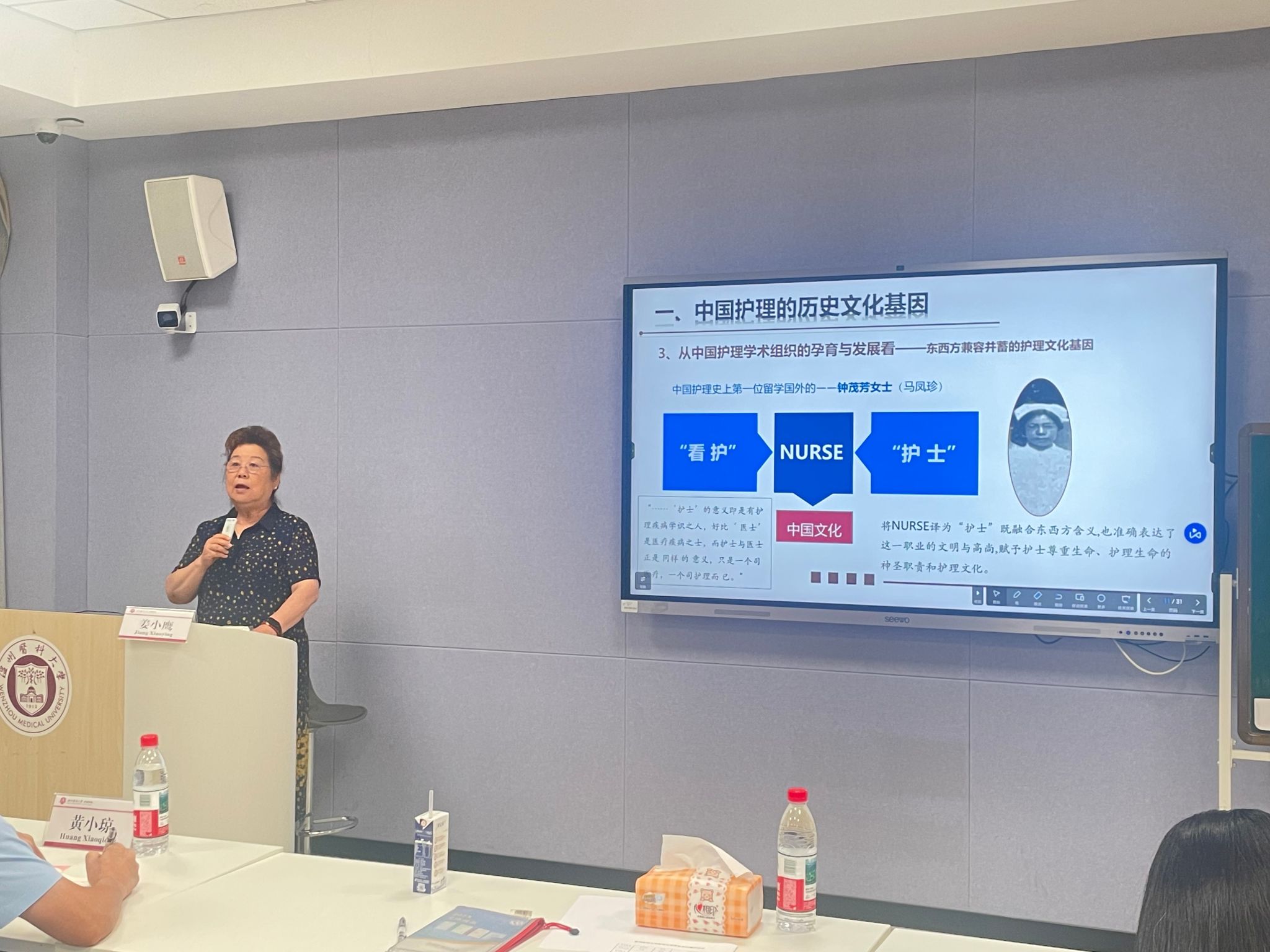 随后,姜小鹰教授围绕护理专业历史文化自信与他信展开探讨,着重强调文化自信对护理高质量发展的重要意义。她提出,护理文化自信是推动专业发展的重要力量,深入理解护理历史与文化,能有效增强护理人员的专业认同与自豪感。同时,要突出护理教育的关键作用,为行业未来发展筑牢根基。