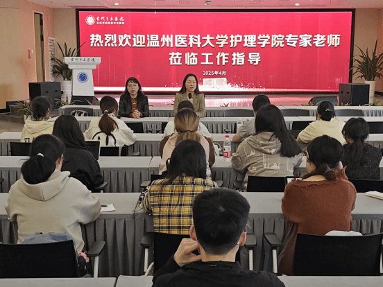 检查组首日先后走访台州市立医院与温岭市第一人民医院,上午在台州市立医院由党委书记林荣海、党委副书记兼院长王金富、副院长蔡军波等领导共同接待,其中林荣海书记全面展示医院教学管理体系架构、师资梯队建设及实习保障支持机制,蔡军波副院长重点补充实习管理实施细则;下午转赴温岭市第一人民医院,在党委书记陈青辉、副院长蔡海军等领导陪同下实地勘察临床教学设施,重点聚焦护理实习生轮转计划执行效度、临床技能操作标准化程度及带教老师培训体系完善情况。