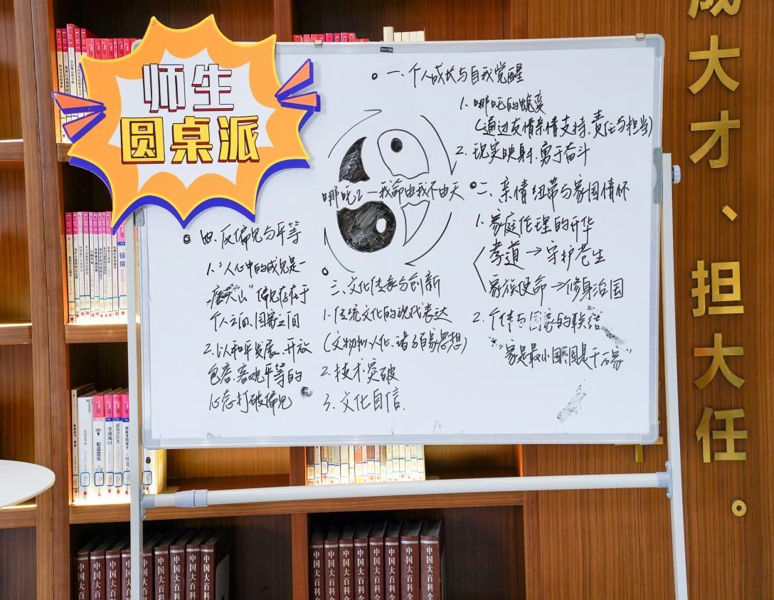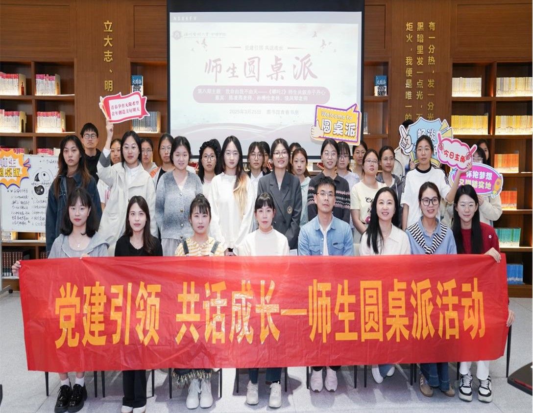 第八期师生圆桌派于3月25日下午在图书馆青春书房成功举办,本次活动以“我命由我不由天《哪吒2》师生共叙赤子丹心”为主题,通过专业教师、优秀学子结合自身经历分享在观看《哪吒2》后获得的感悟和见解,以光影为媒,将电影中‘逆天改命’的励志内核与现实教育相结合,进一步激发了师生们对理想信念的追求与思考。本次活动嘉宾为成人导航 新进博士陈凌燕老师、孙博伦老师、饶凤琴老师以及学生代表陈彬艳、周婧轶、楼雪纯、徐莹莹同学,观众由学生党员、入党积极分子代表及线上2024级大一学生组成。