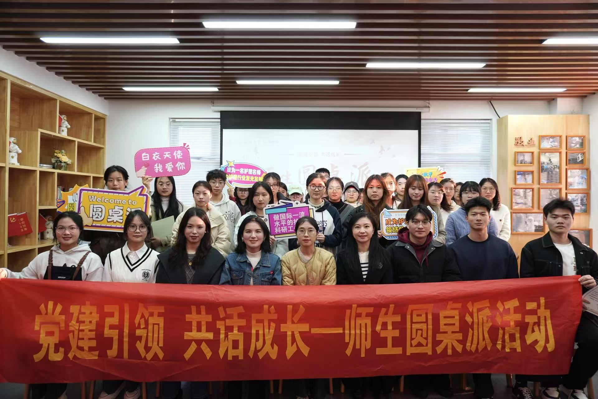 现场交流氛围浓厚,在座观众积极提问,讨论话题层出不穷,在座师生围绕AI赋能话题展开深入交流探讨,此次活动通过现场讨论与线上直播相结合的方式,扩大党建活动辐射圈,呼吁护理学子积极奋发,多学习多提升使用AI的技能,锤炼自身能力。