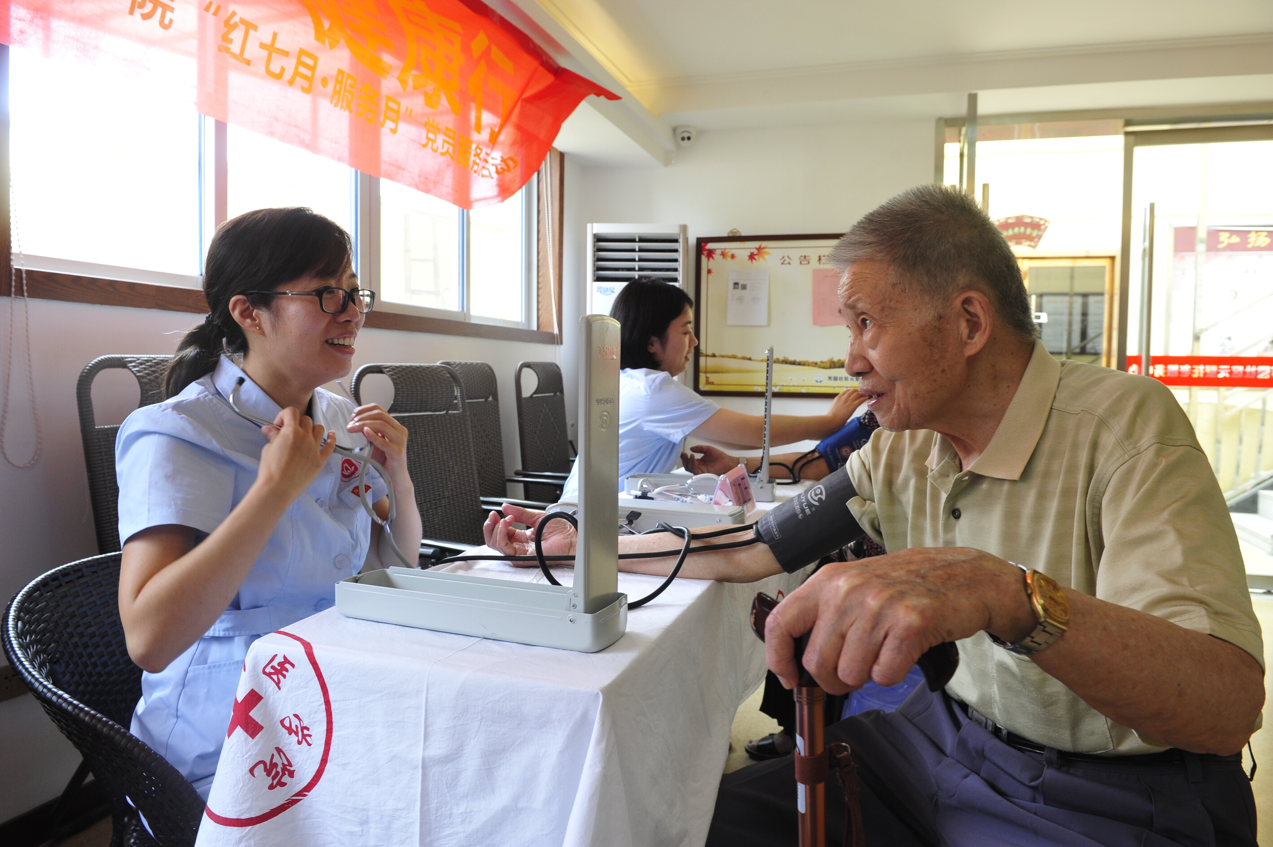 为纪念中国共产党成立96周年,7月18日上午,成人导航 教工第一、第二党支部20多名党员佩戴着鲜红的党徽,走进温州市上陡门芳园社区,开展“护理进社区,携手健康行”“红七月·服务月”活动。
