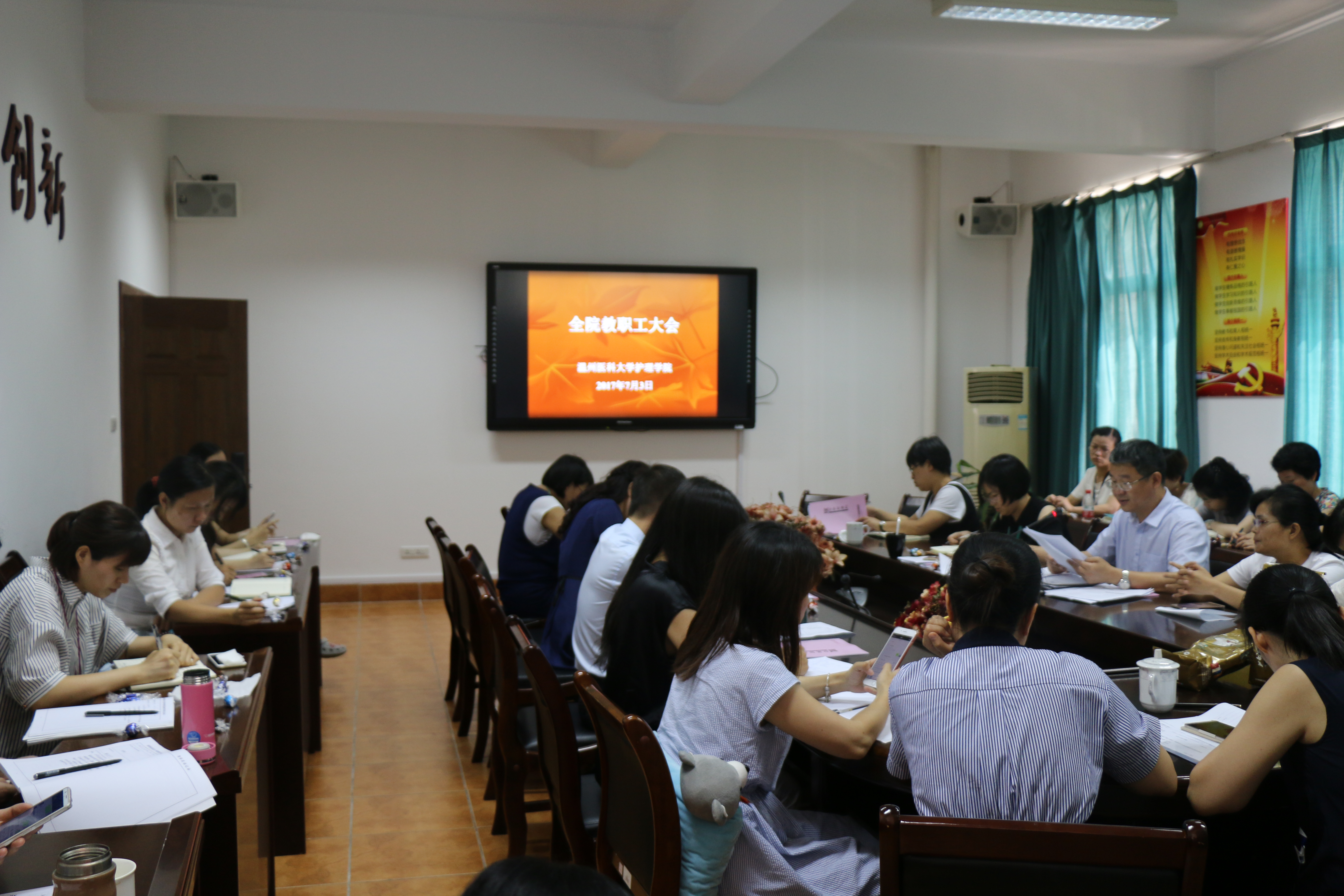 7月3日上午,学院在7C306会议室召开了本学期最后一次教职工大会,会议由院长卢中秋主持,学院党委书记陈慧讲话。