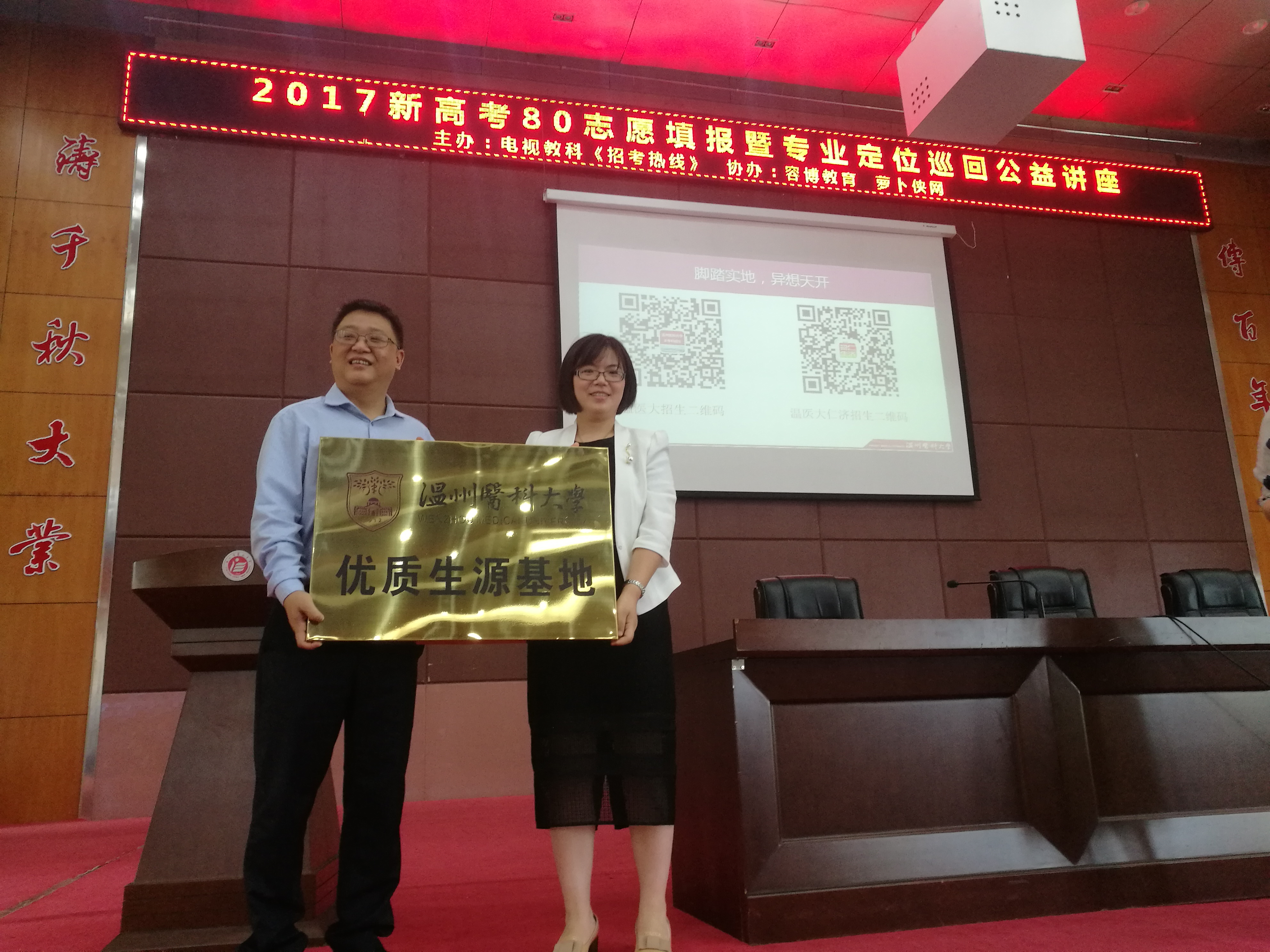 浙江省丽水中学是浙江省一级重点中学,每年为我校输送了大批优秀学生。当天,学校还授予了丽水中学“优质生源基地”称号。