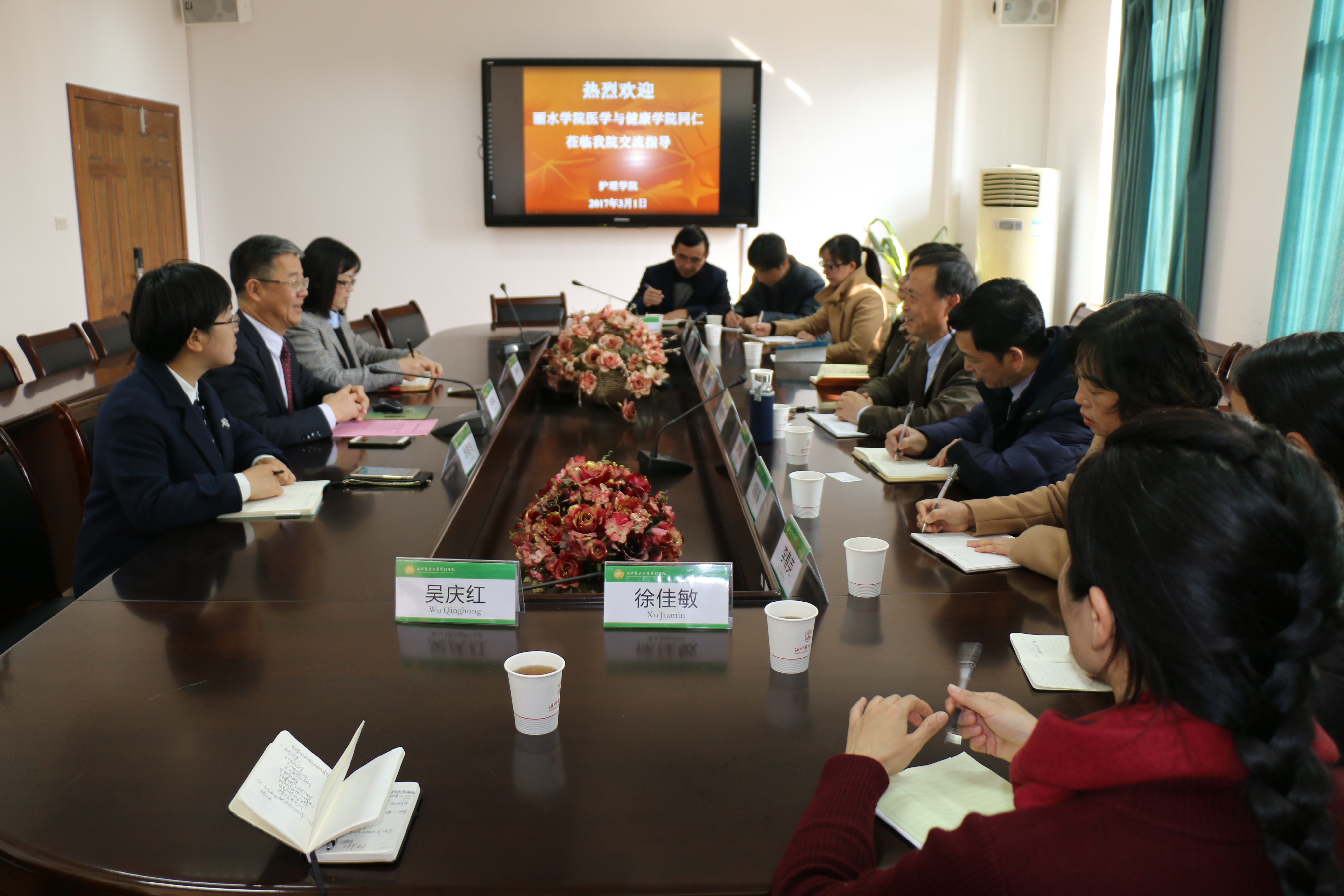 3月1日,丽水学院医学与健康学院党委书记、常务副院长王伟杰,副院长吴松泉等一行11人来访成人导航 。成人导航 院长卢中秋、副院长杨晔琴、党委副书记涂艳玲等热情接待了来访客人。