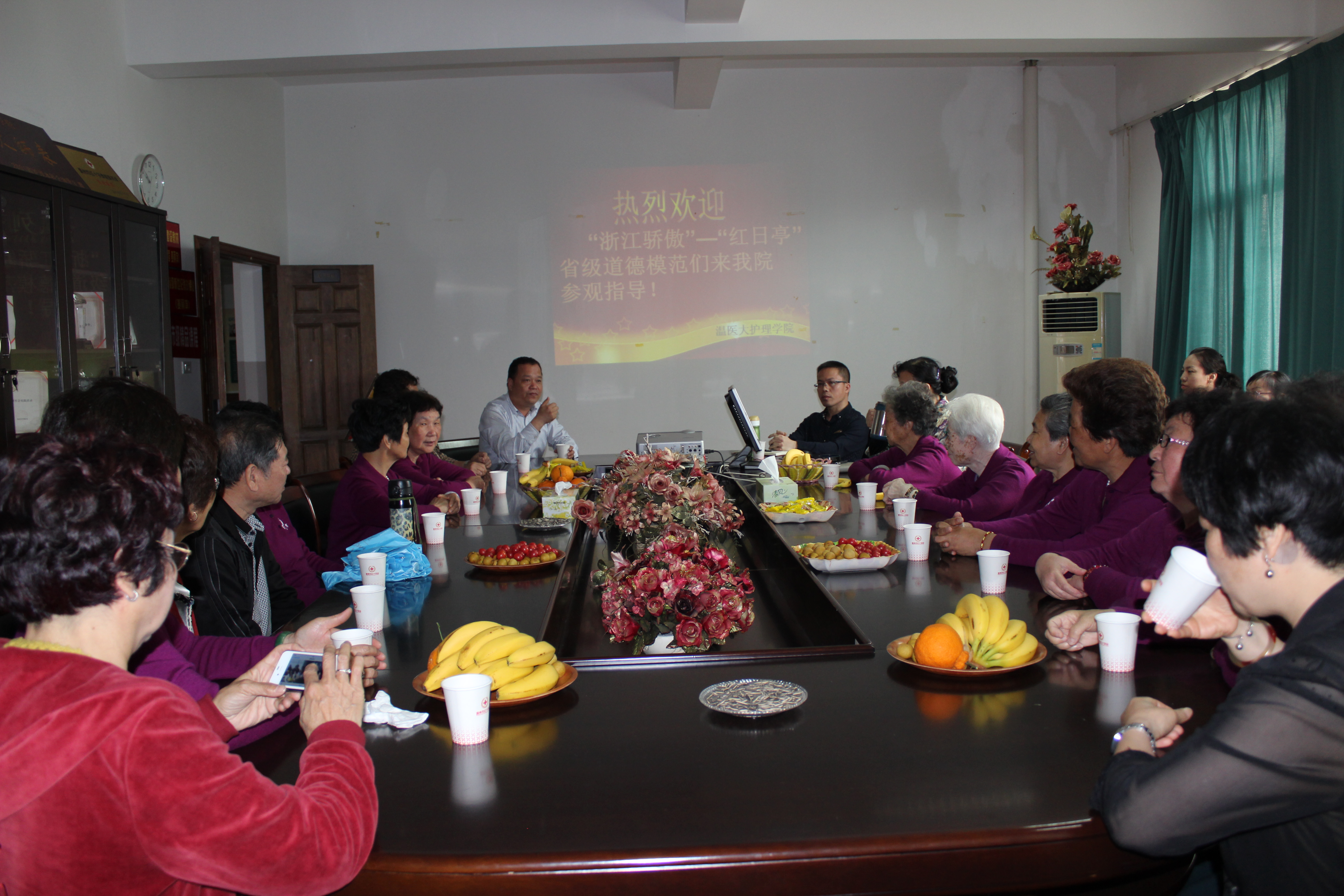 学院党委书记陈行汉、副院长蔡福满、原工会主席余昌妹、学院办主任孙海琴、学工办主任涂艳玲等学院领导以及其他相关人员参加了欢迎仪式,陈行汉书记表示了热烈的欢迎和祝福,并对“红日亭”四十多年来夏熬凉茶、冬施热粥、风雨无阻的善举表达了感激与赞美。欢迎仪式后,学院原工会主席余昌妹带领“妈妈”们参观了学院实验室和校园。