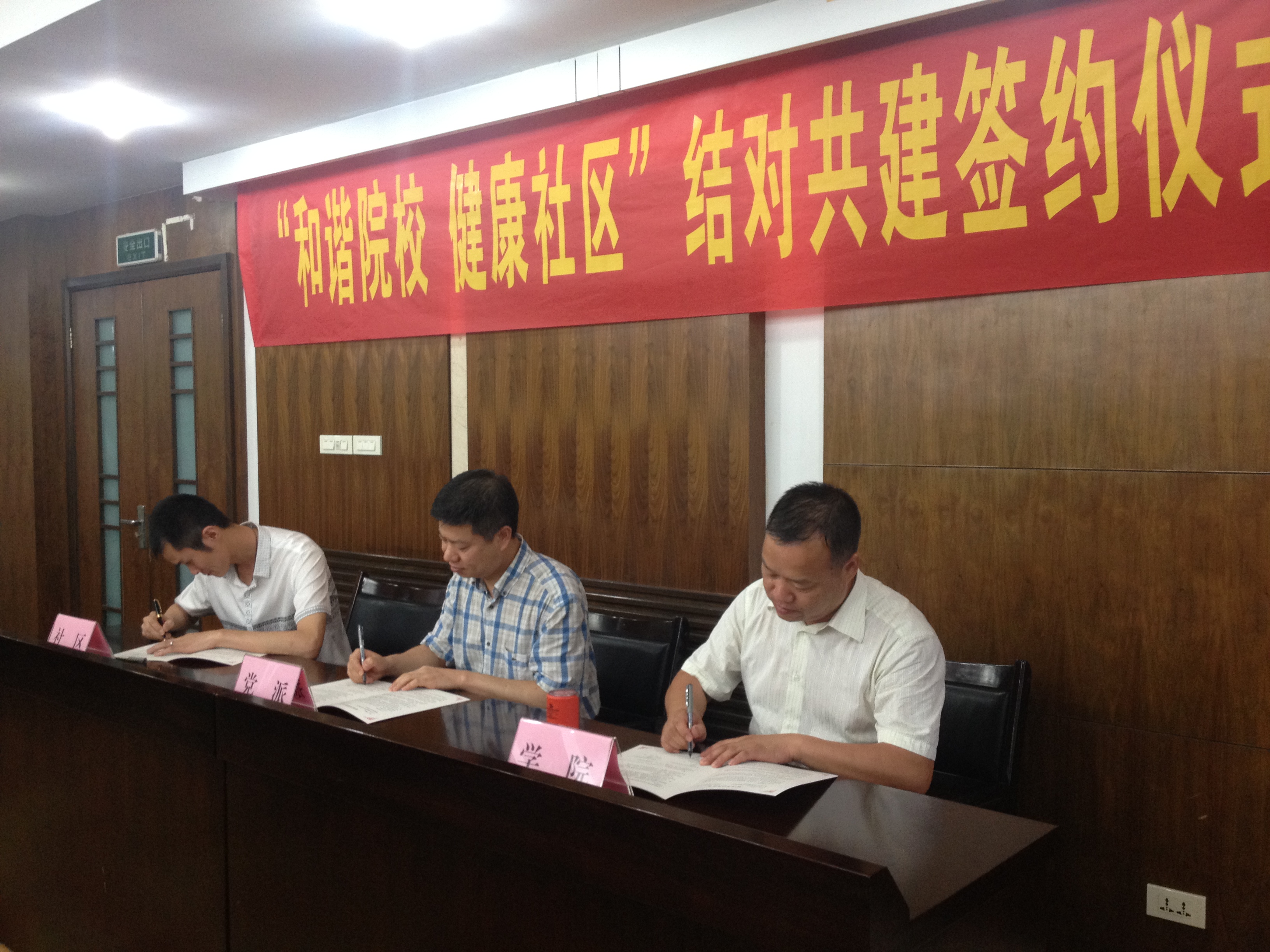 2014年6月18日,在校党委统战部的牵头组织下,成人导航 与九三学社基层委、温州龙湾永中万和社区签订了为期三年的“和谐院校、健康社区”结对共建协议,以打造高校与地方合作平台,实现共同发展。
