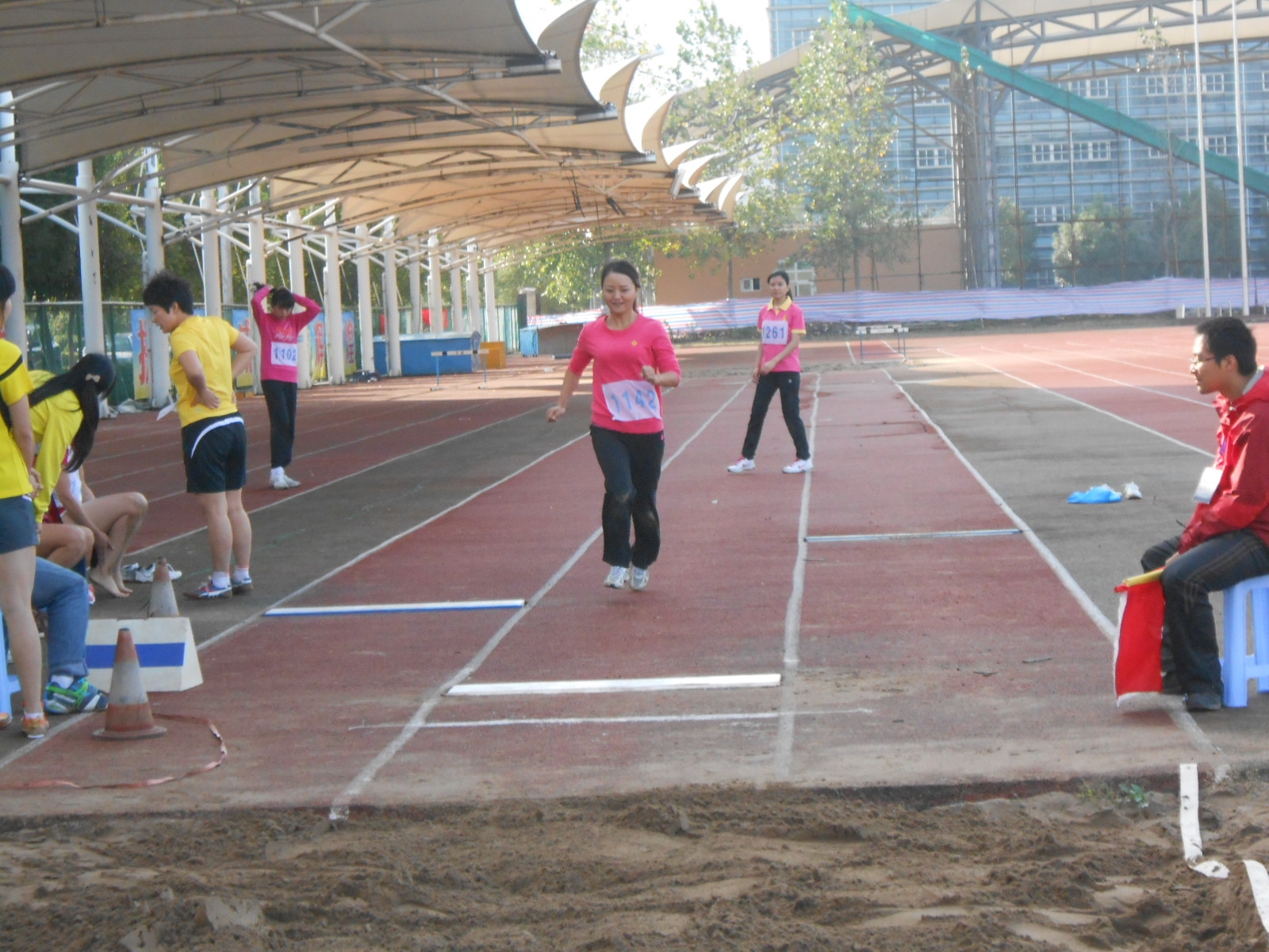 11月11号上午9点,在跳远场上,代表成人导航 参赛的吴东方老师带着笑容轻松上阵。站在起跑的地点,深吸一口气,承载着老师和同学的希望,用力向前跑,奋力一跳,轻盈地落在了沙坑里,这样反复努力。