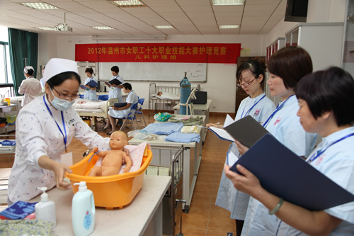 10月23日,2012年温州市女职工十大职业技能大赛护理竞赛在成人导航 举行,这次护理竞赛吸引了全市县各大医院临床护理24人,重症监护护理24人,儿科护理20人共68名护士参赛。据悉,目前温州市共有20388名护理人员工作在各大医院、社区服务中心。