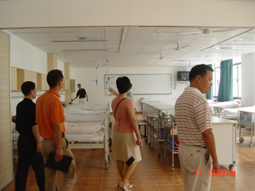 陈行汉副书记向客人们介绍了学校和学院的办学历史,护理专业的发展情况。学院办公室王世泽老师向客人们详细汇报了学院的招生就业、学科建设、人才培养、实验室建设、教学管理和实习基地建设等有关方面情况。朱卫民院长也向我们简单介绍了广西医科大学成人导航 的教学、科研和人才培养情况。随后客人们参观了学院护理学基础、急救护理学、外科护理学、妇儿实验室和护理示教室,他们详细了解了实验室建设规划、布局等情况,对成人导航 的实验室建设和教学管理工作大加赞赏。