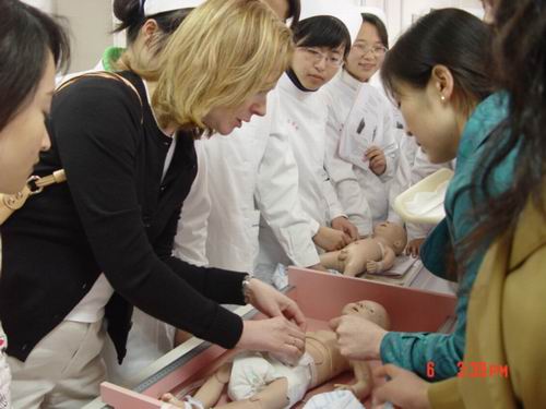 近日,美国西北大学的两位在附二医新生儿从事护理工作的志愿者,在附二护理部张春美老师和时亚平老师的带领下参观了成人导航 ,期间,在学院会议室,成人导航 王一婷老师代表学院向两位客人介绍了学院的发展史和学院总体的情况,随后,成人导航 副院长姜丽萍在百忙之中接见了两位远到而来的客人,并为志愿者颁发纪念品..最后两位洋护士还兴致勃勃地参观了成人导航 试验室,并饶有兴致地参与了学生实验课,两位洋护士对温州医学院成人导航 的发展规模和理念表示惊讶,同时对成人导航 的先进的试验设施赞叹不已,纷纷表示希望今后有机会来成人导航 做一名护理教学工作的志愿者.