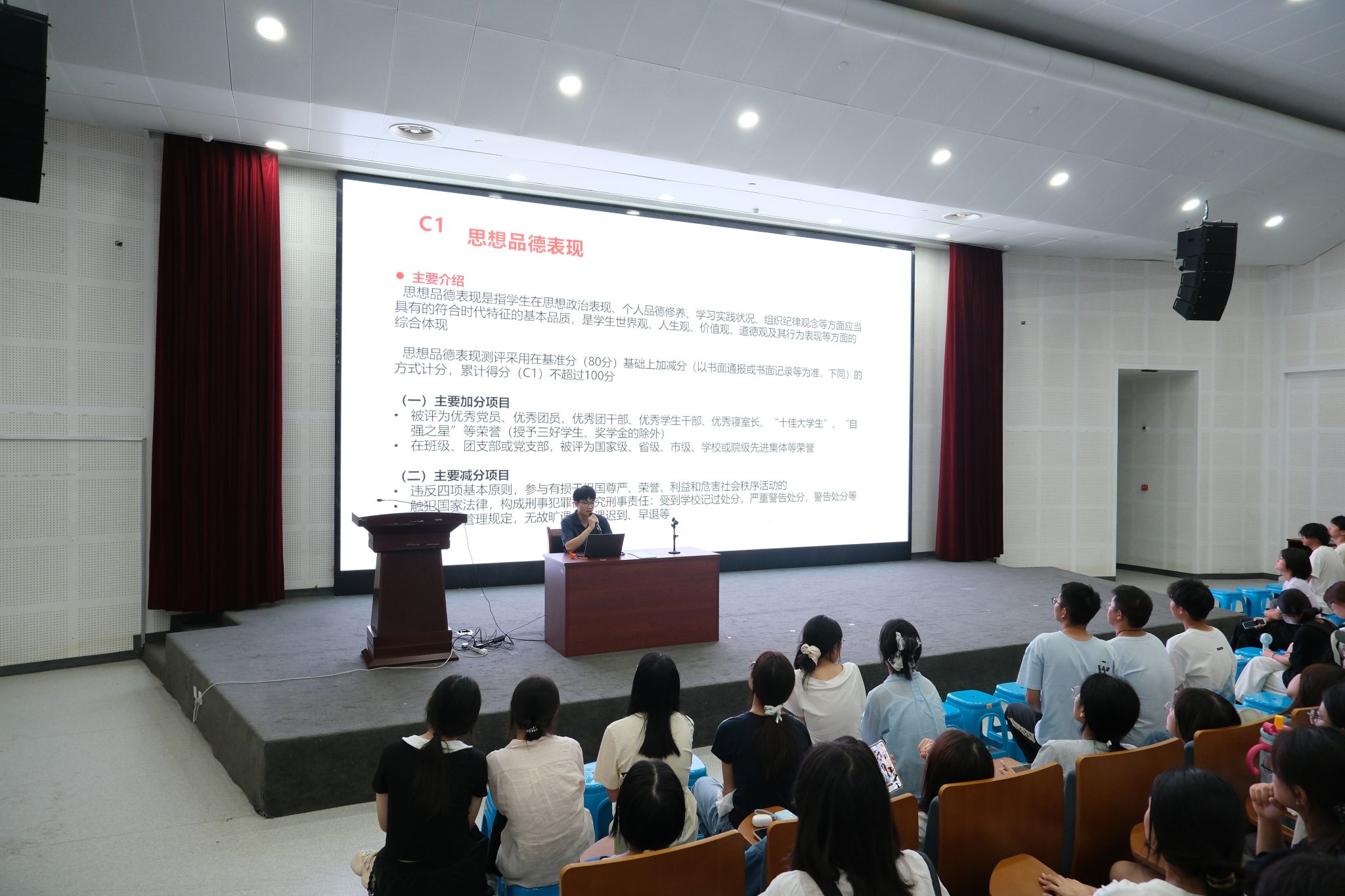 为助力同学们明晰校园成长路径,规范自身行为,成人导航 王国超老师为同学们详细讲解了多项重要内容。他围绕学生素质综合测评展开,介绍了其评定规则与重要意义,让同学们清楚如何提升自身综合表现;对评奖评优政策进行解读,鼓励大家积极进取、争取荣誉;还带领同学们深入学习学生手册,明确各项规章制度;同时强调了违纪的严重后果,提醒大家严守纪律红线。希望同学们以此为指引,在大学期间全面发展、健康成长。