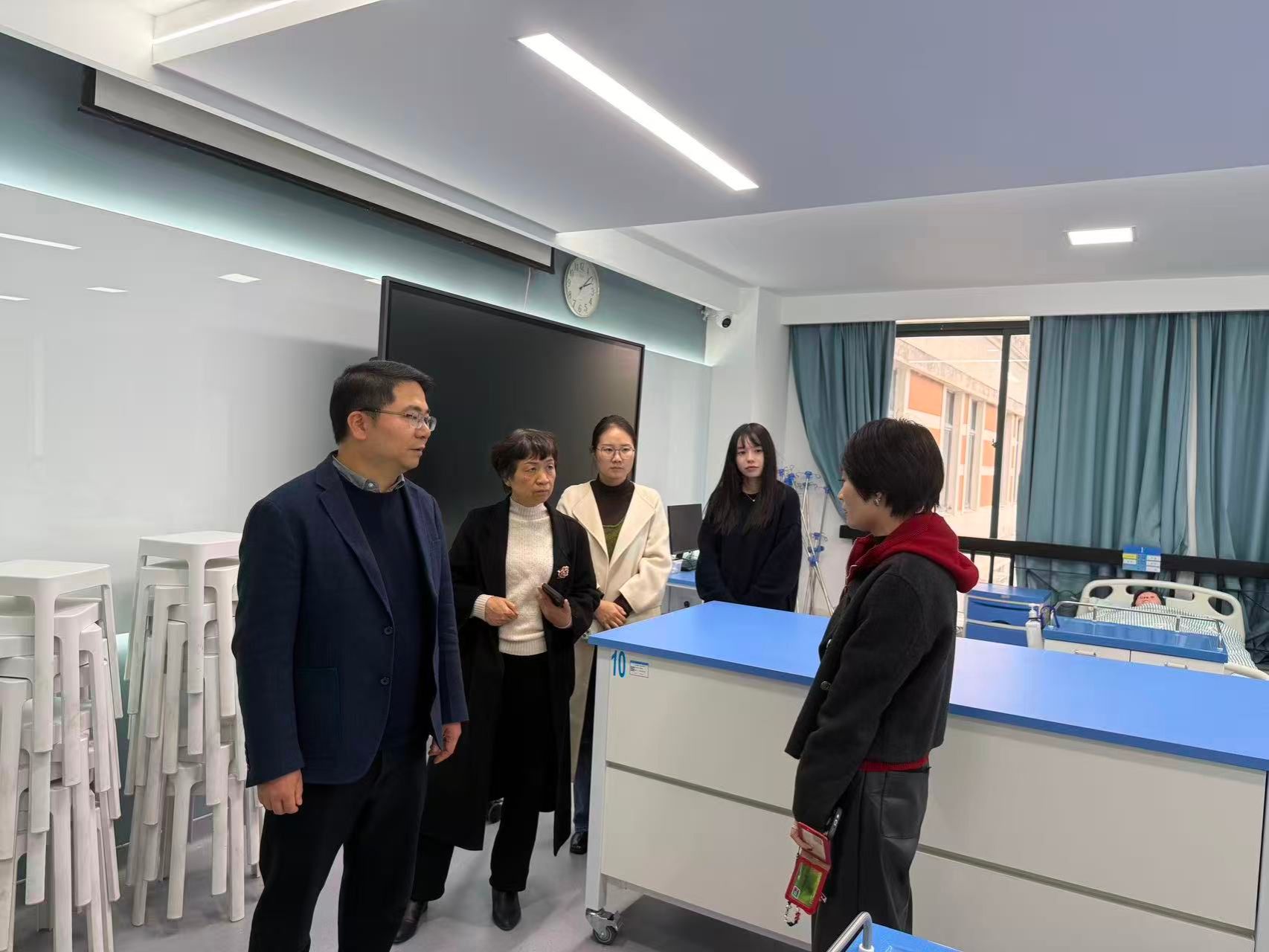 访问期间,林国旗副书记与周瑾院长一行还参观了学院的科研实验室及护理实验教学示范中心,详细了解学院的科研平台管理以及在模拟教学、智慧护理、虚拟仿真实验等方面的创新实践。