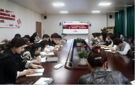 • 4月16日下午,学院在7C306会议室召开2025年全面从严治党暨“清廉学院”建设推进会。党委书记王敏出席会议并讲话,党委副书记、纪委书记金晓童主持会议并作工作报告。院长蔡福满,副院长黄小琼、董超群,学院纪委委员,各党支部书记,各科室(教研室)负责人、全体辅导员与会。