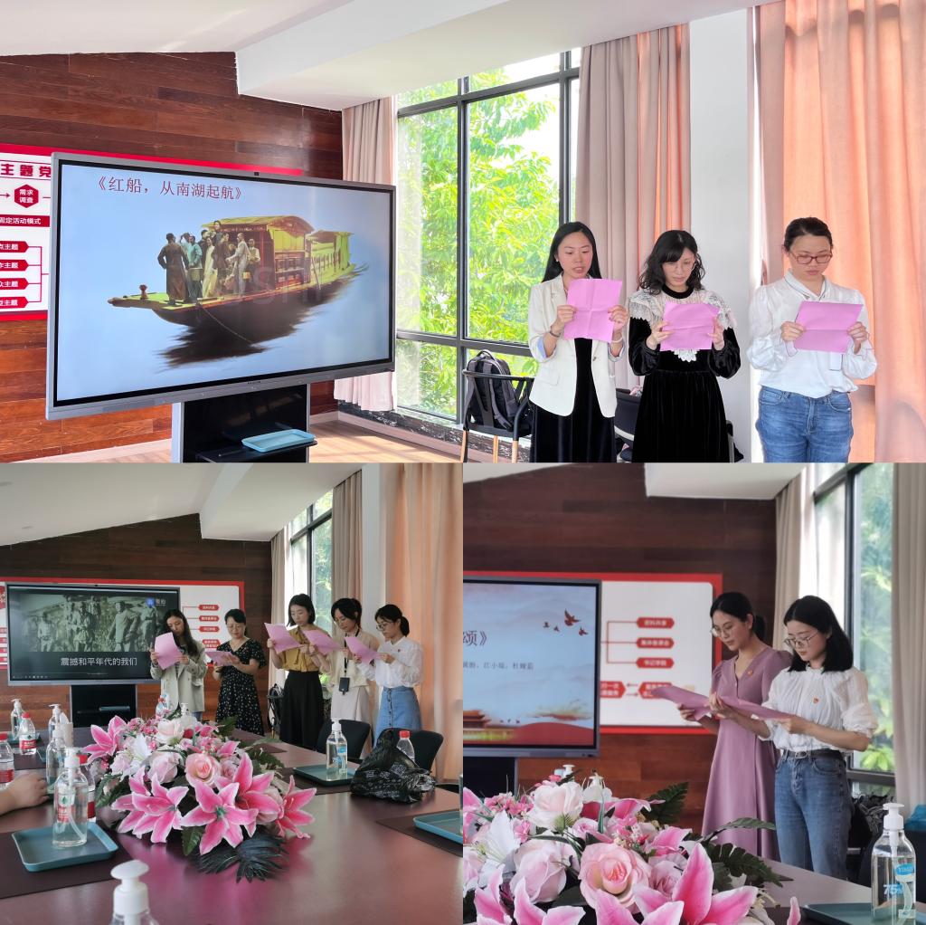 支部党员还分组表演朗诵节目,大家朗诵过程中感情饱满、真挚,以《红船,从南湖起航》《党的赞歌》《中国梦》3个节目,充分抒发了对党和国家光辉足迹的无限崇敬和热爱,用最嘹亮的声音讴歌了党的丰功伟绩。现场还组织了手工活动,一起制作精美书签,用书签标记党的二十大盛世开篇。