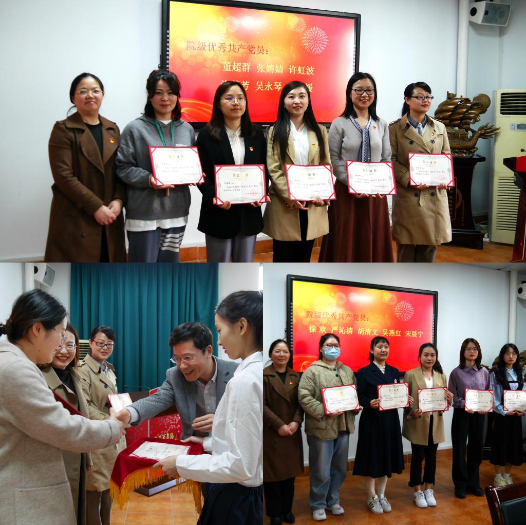 会议回顾了学院开展党史学习教育的精彩瞬间,并表彰了院级先进党支部和优秀党员。教工第二党支部书记吴永琴作“追溯百年,在潮起欧江中学四史”经验分享,学生第二党支部书记张迪介绍了学院青年宣讲团情况。