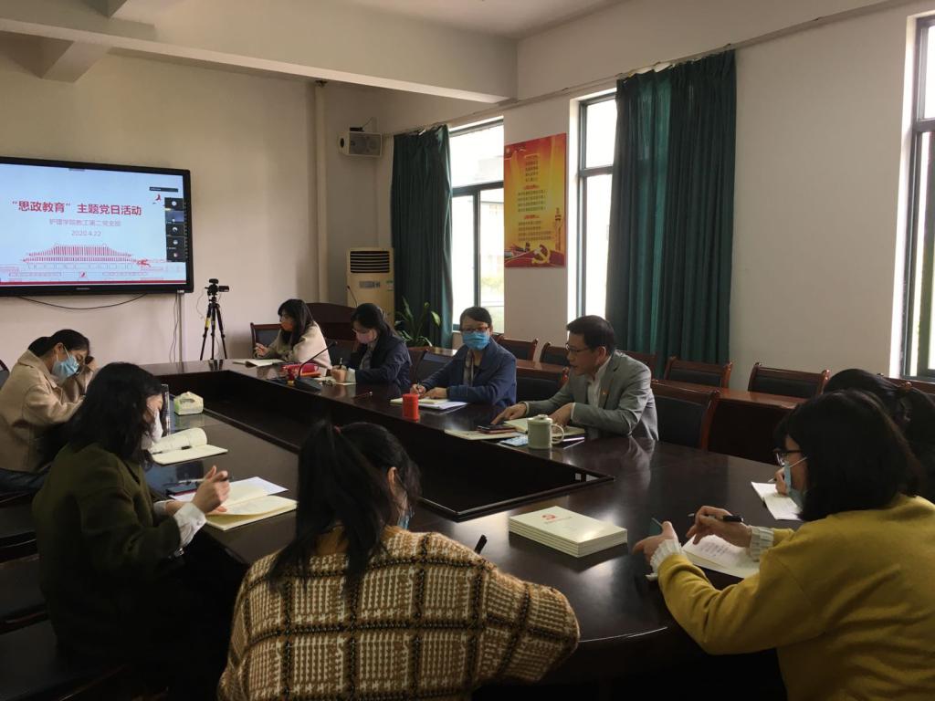 为贯彻落实全国高校思想政治工作会议精神,推进成人导航 “课程思政”教学改革,强化教师思政育人责任担当,实现思政教育和专业教育的深度融合,4月22日下午,成人导航 教工第二党支部在7C306会议室开展了战“疫”背景下的 “思政教育”主题党日活动。活动采取线上线下相结合的方式进行。