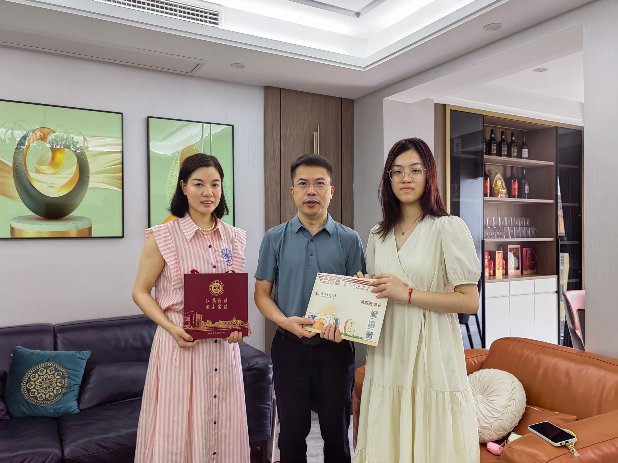 骄阳似火,璀璨而热烈。7月28日上午,成人导航 院长蔡福满前往温州龙港,化身“快递员”亲自将2024年第一份录取通知书送到2024级助产学新生金津手中,学院社区护理教研室副主任(主持工作)谢小鸽陪同。