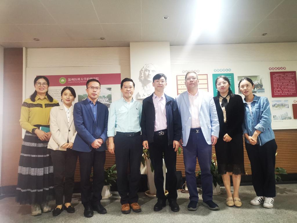 10月12日,丽水学院国际交流与合作处处长沈育刚、丽水学院医学院执行院长吴松泉、护理学系副主任许丽娟一行来成人导航 访问交流。我校国际合作与交流处副处长林歌吟,学院院长蔡福满、副院长张春梅、教学办主任孙海琴等参会。