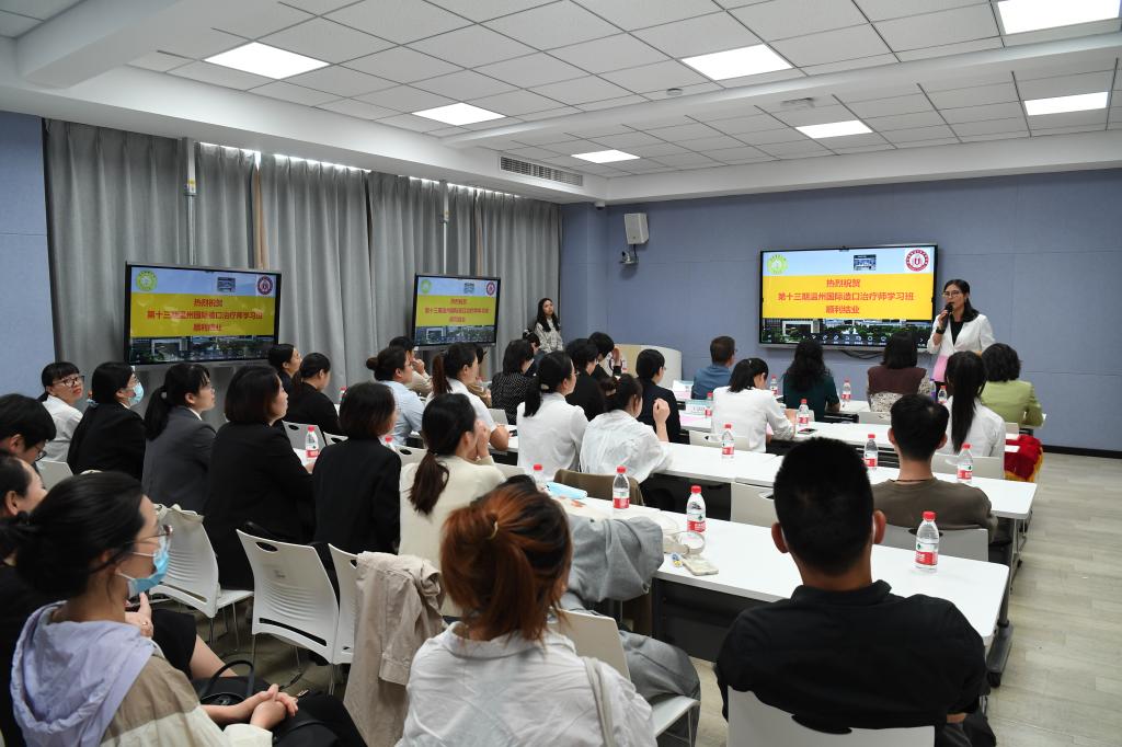 10月21日下午,温州国际造口治疗师学校第十三期培训班结业典礼在成人导航 茶山校区6A103教室通过线上线下相结合的方式召开。来自全国10余个省、市、自治区的29名学员经过3个月的理论学习与临床实践,顺利通过考核,获得国际造口治疗师(ET)证书。